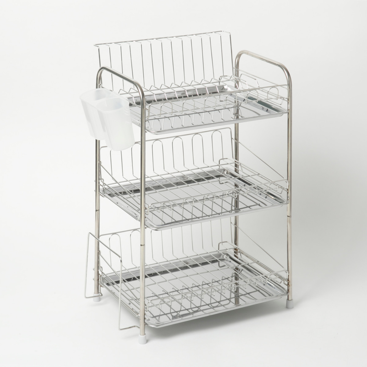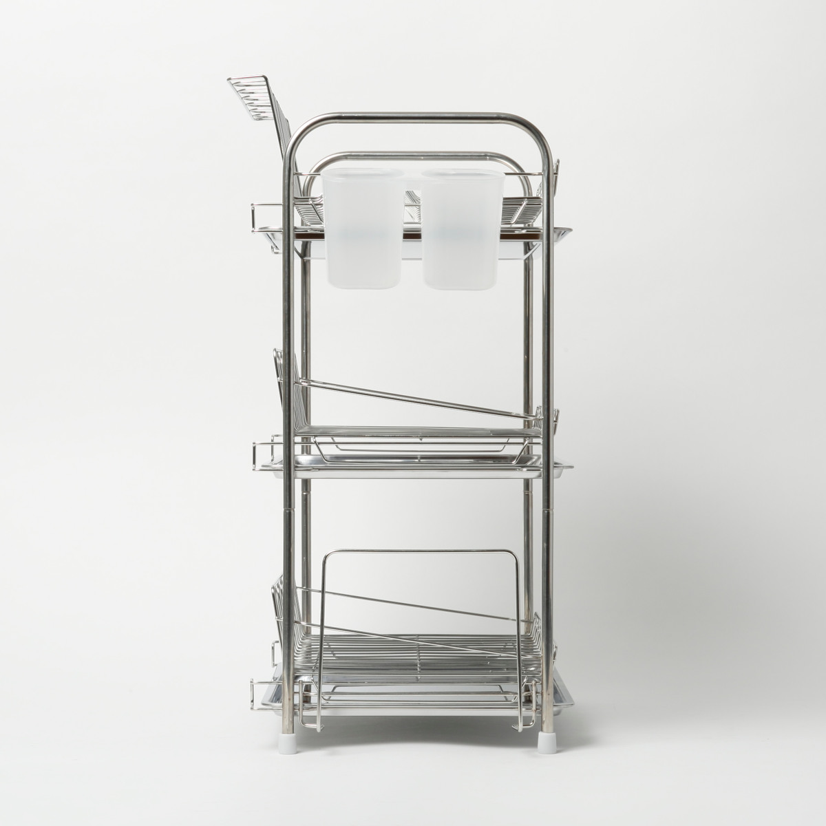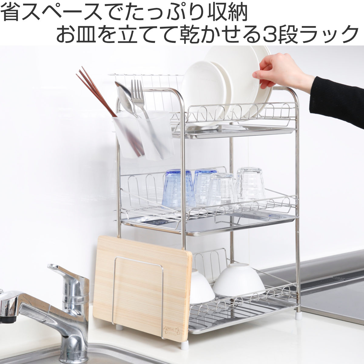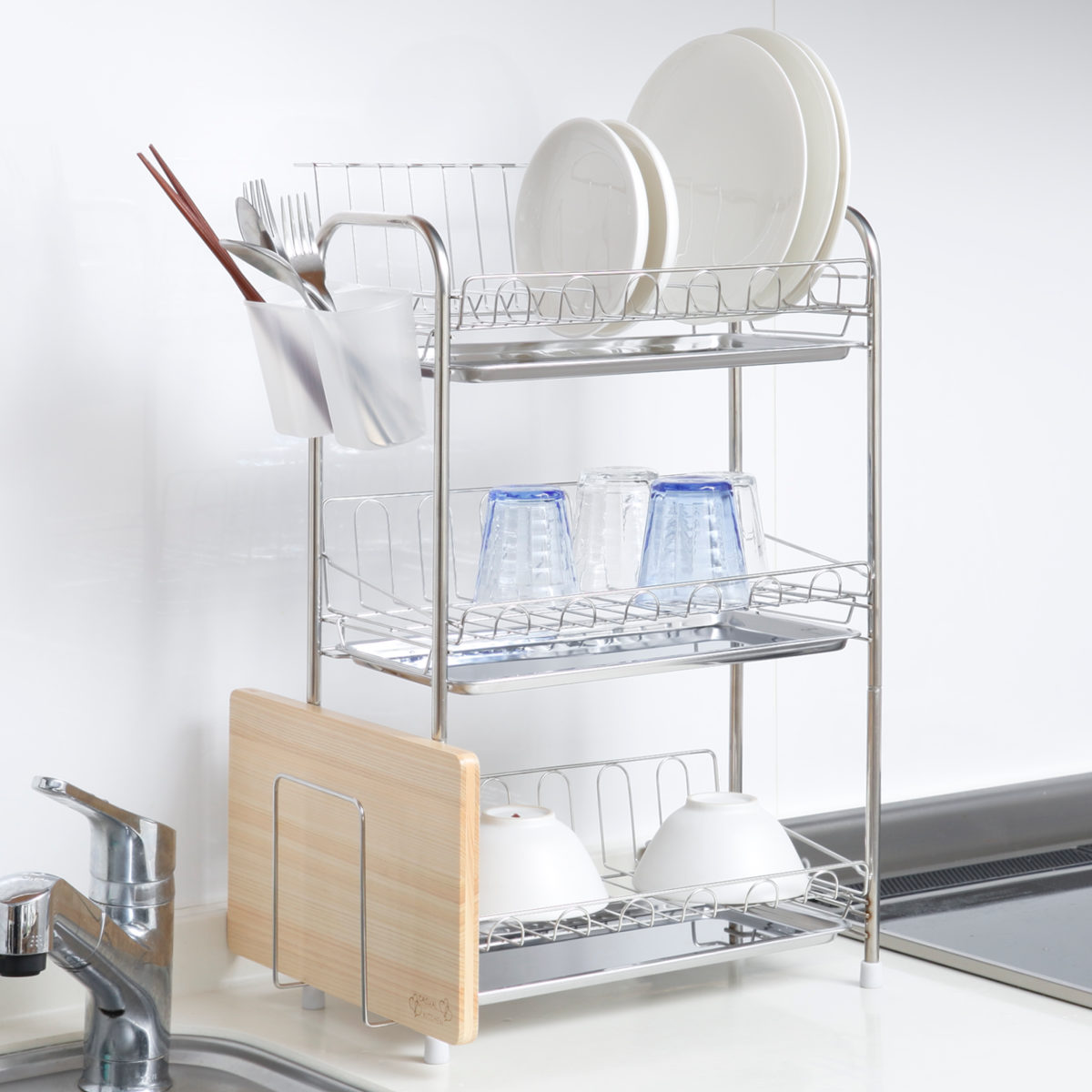 水切りラック シエラ ステンレス製 3段式 水切りバスケット レギュラー ( 水切りかご 水切りトレー ステンレス 大容量 水切り 洗い物 食器 洗い 乾燥 ラック ディッシュラック コンパクト まな板 グラス 皿 カトラリーポケット )