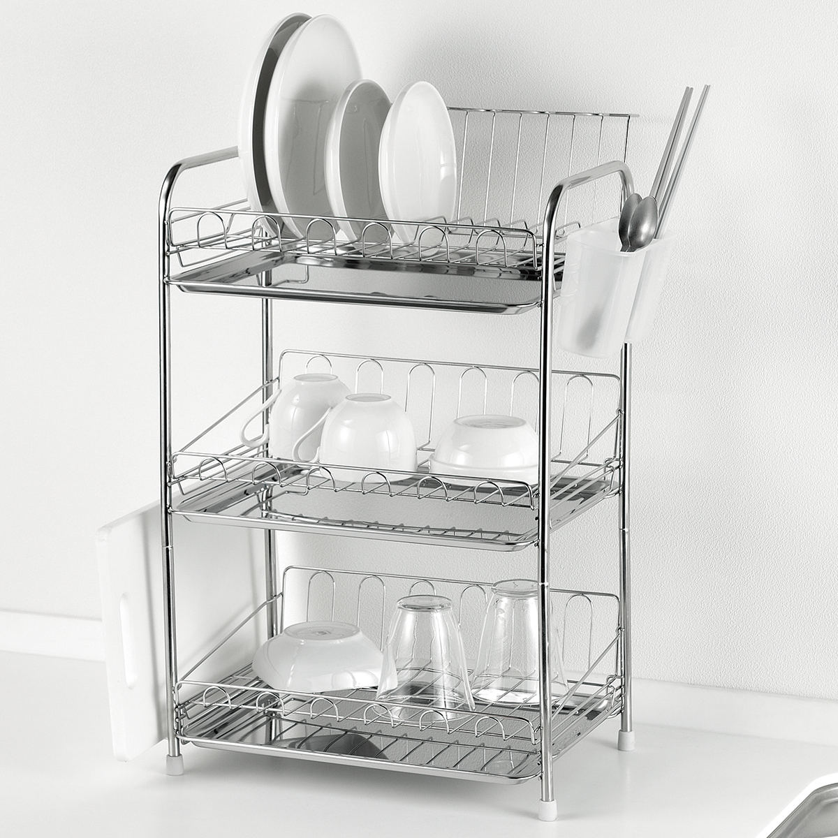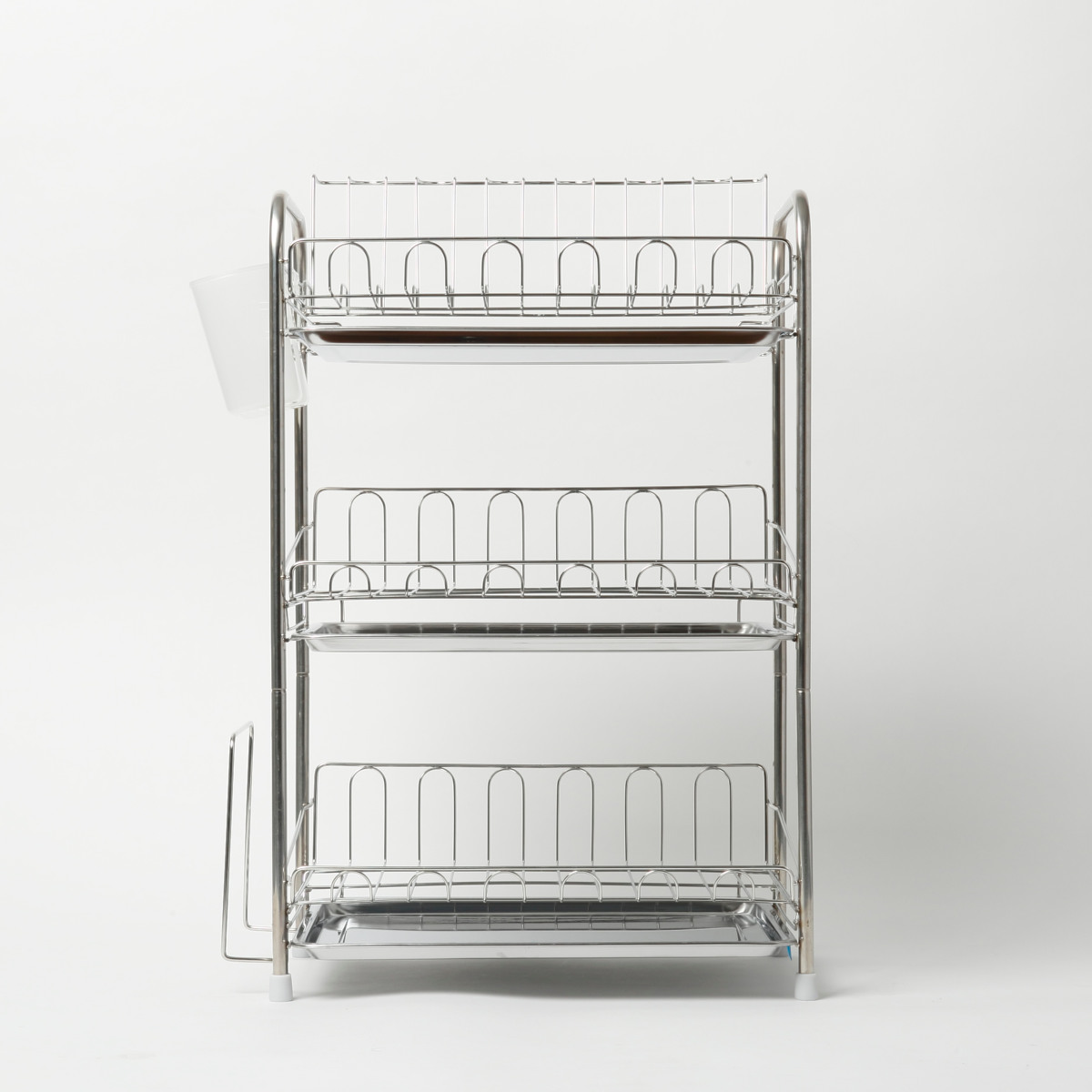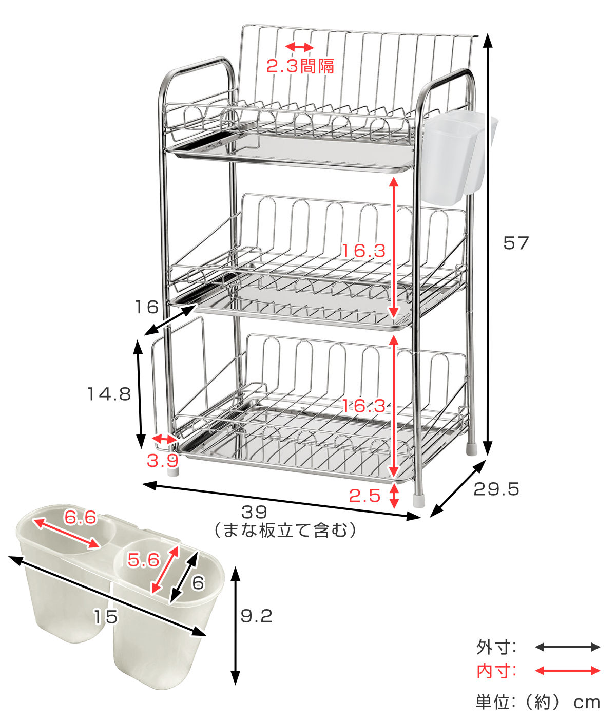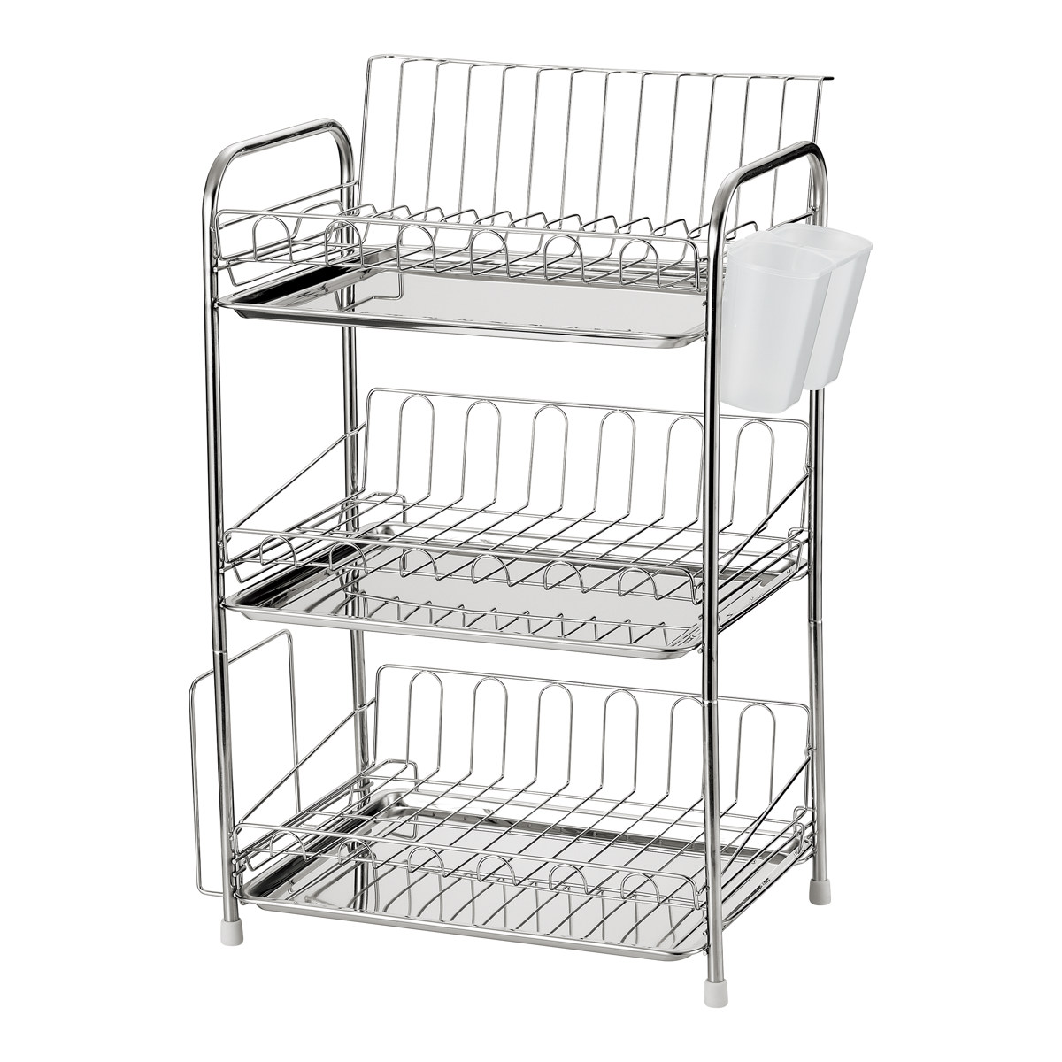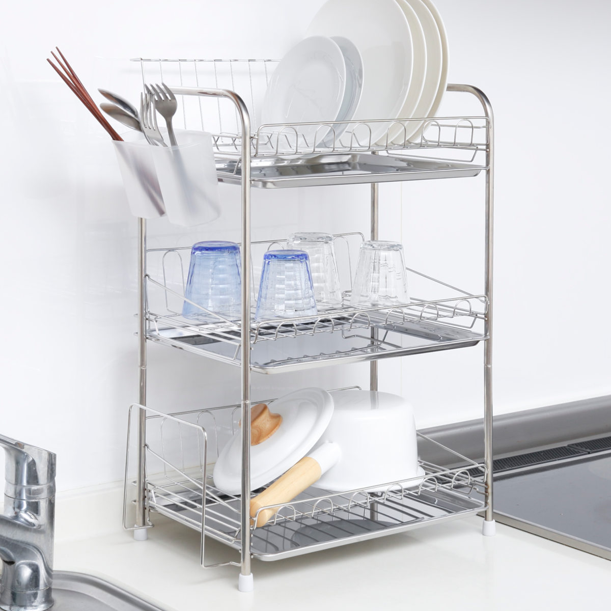 水切りラック シエラ ステンレス製 3段式 水切りバスケット レギュラー ( 水切りかご 水切りトレー ステンレス 大容量 水切り 洗い物 食器 洗い 乾燥 ラック ディッシュラック コンパクト まな板 グラス 皿 カトラリーポケット )