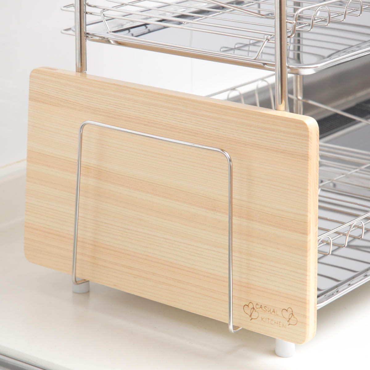 まな板1枚を乾燥できるまな板立て付きです。置き場所に困るまな板も乾かしながら収納できます。布巾を干すのにも便利です。