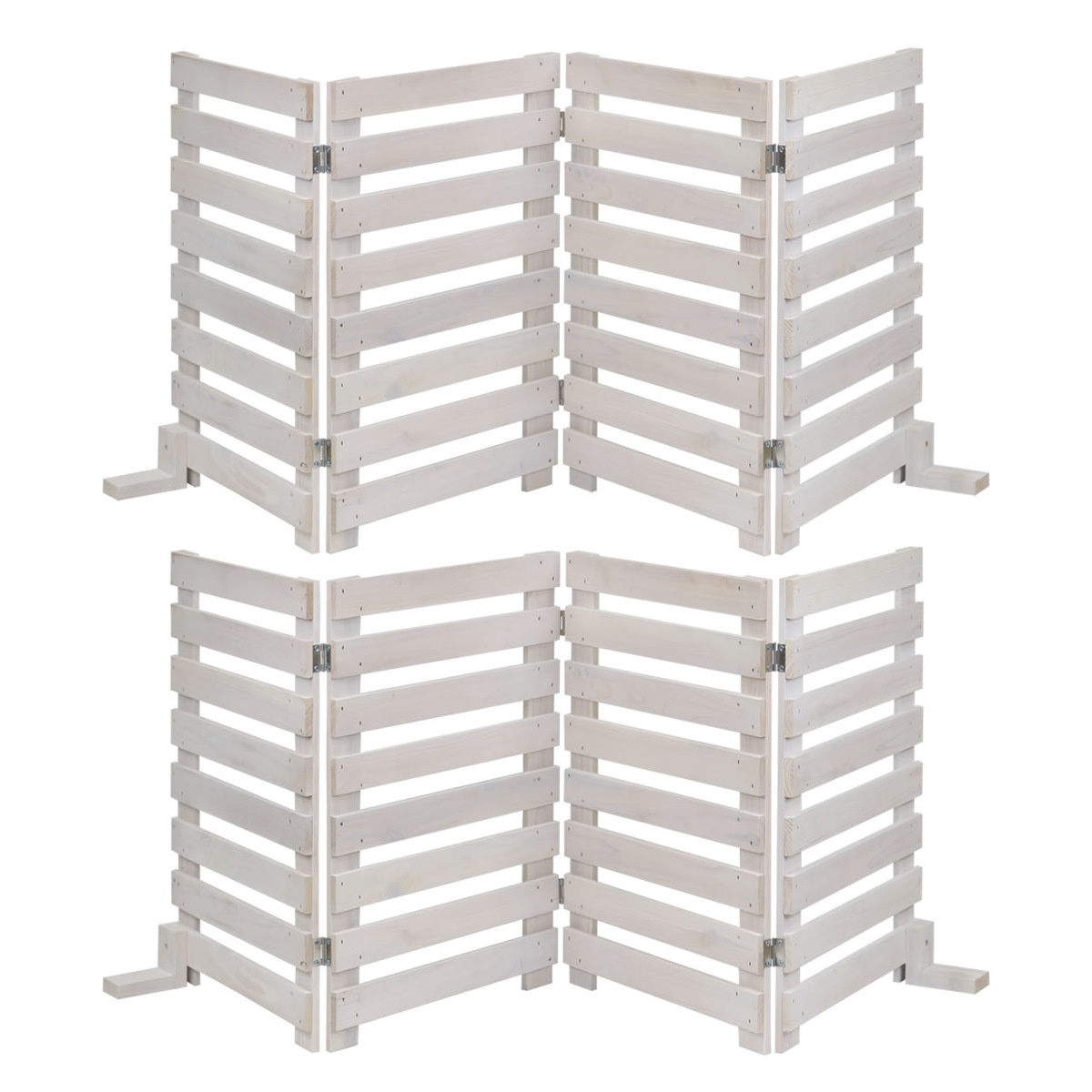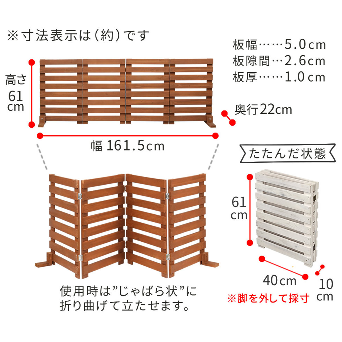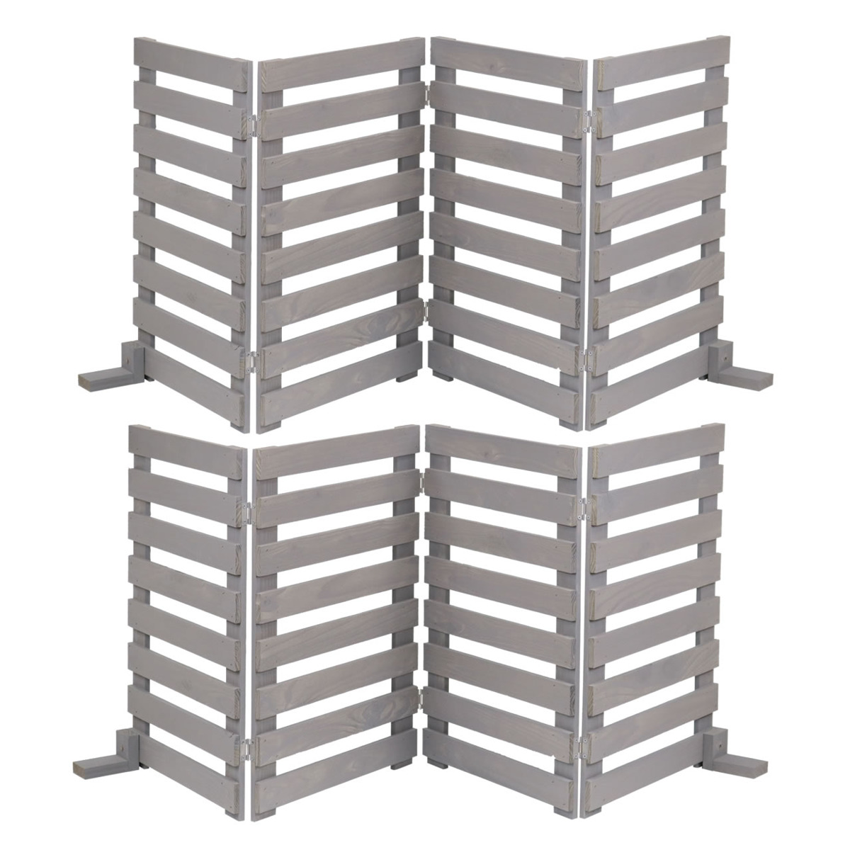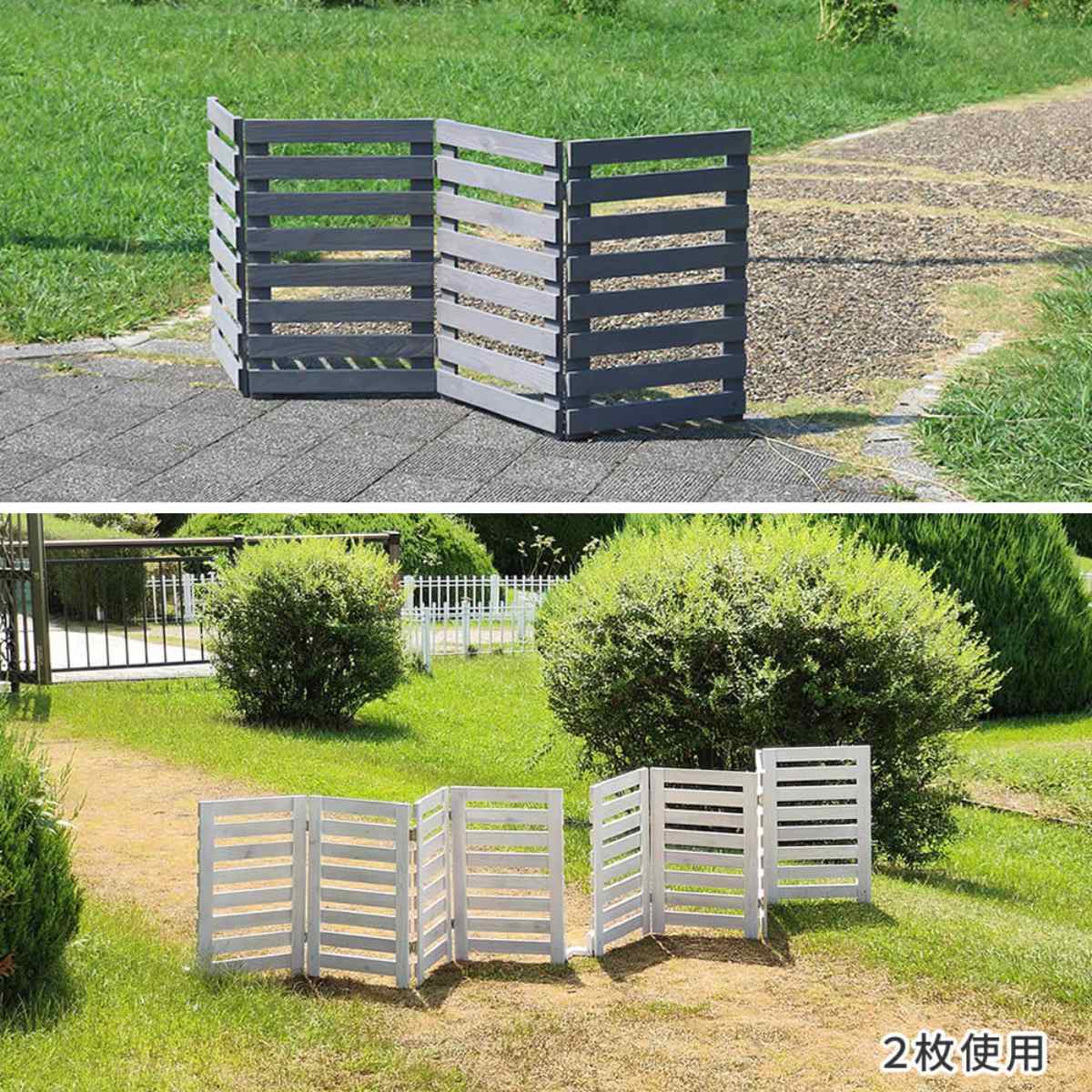 フェンス 折り畳めるウッドフェンス 幅160cm 横ボーダー 2枚組 ( ガーデンフェンス 柵 折りたたみ 4連 園芸 エクステリア 雑貨 ウッドフェンス 花壇 庭 ベランダ バルコニー ガーデニング 木製ガーデンフェンス 蝶番 インテリア ) 【グレー】