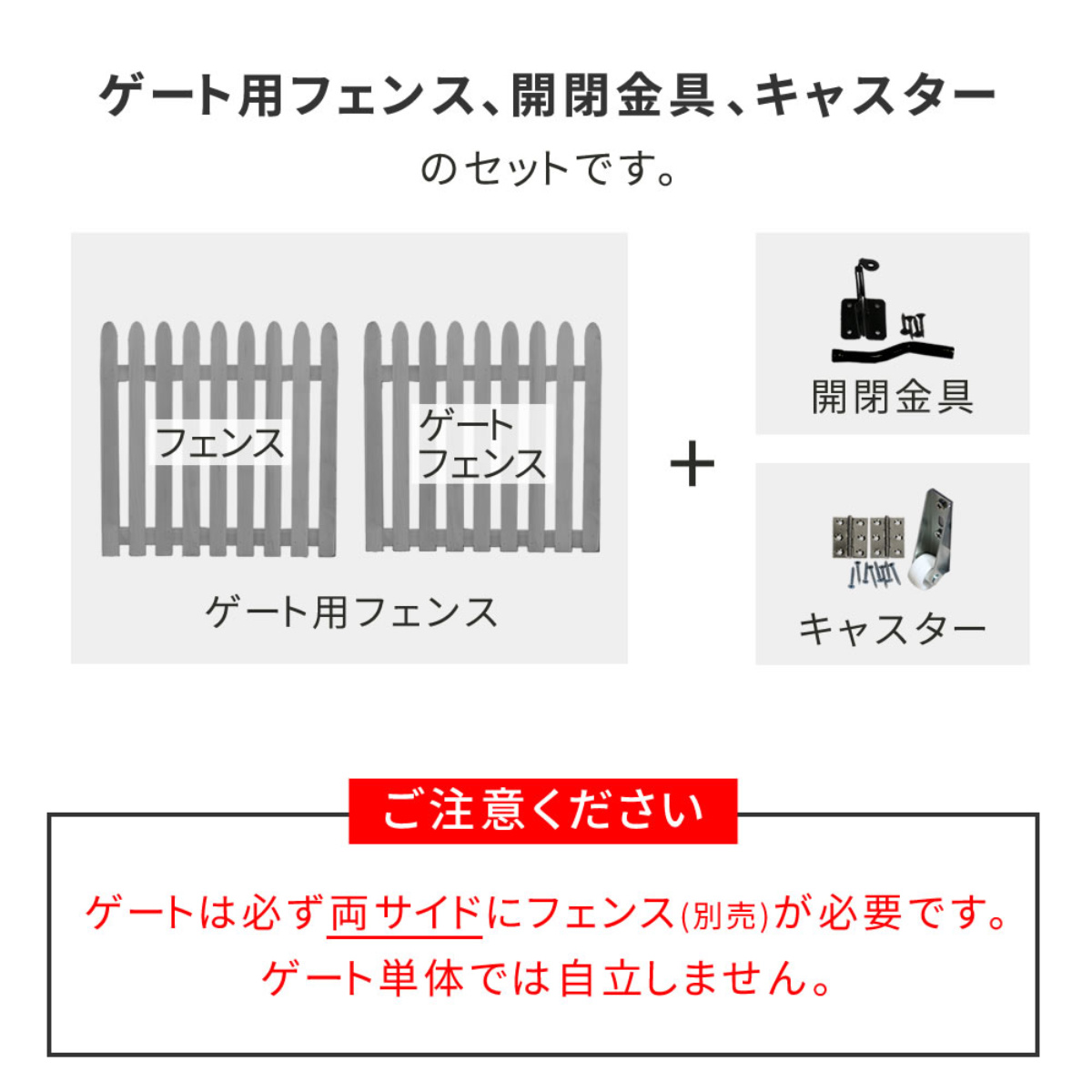 | 注意事項 | ※ゲート用フェンスのみの販売ページです。ゲートは必ず両サイドにフェンス(別売り)が必要です。 ※商品ページ内には別の商品を含む画像を使用しています。 |