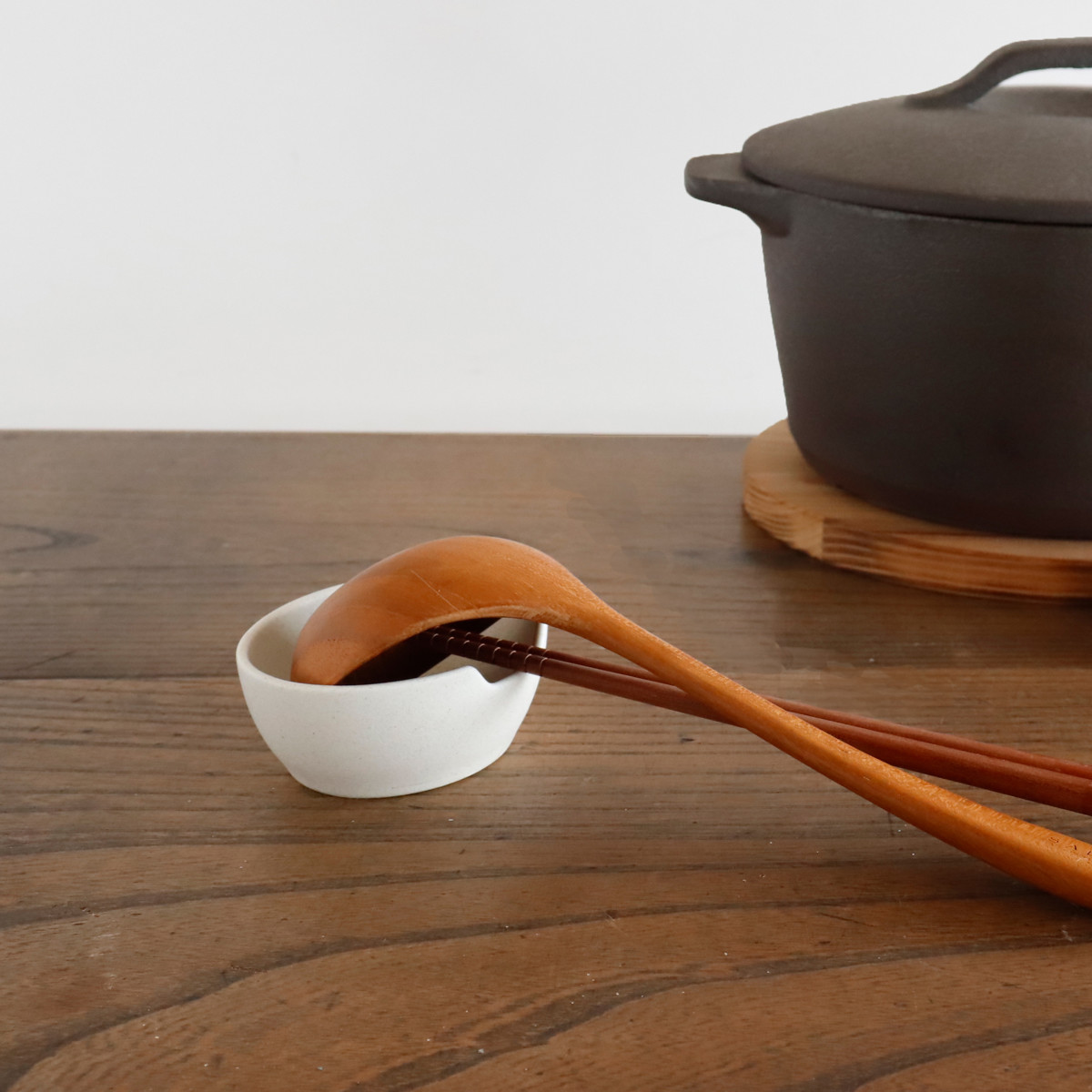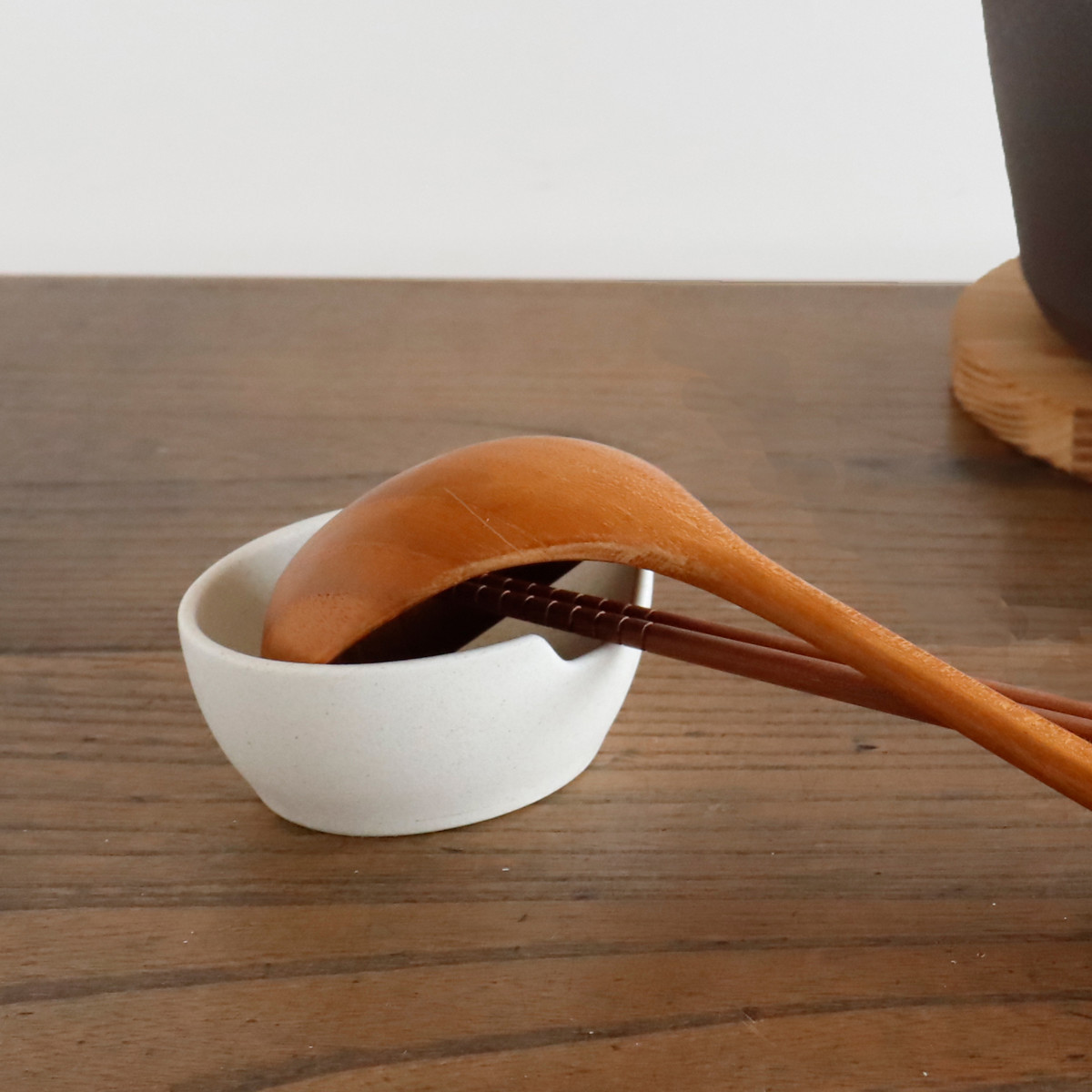 お玉や菜箸を一時置きするときに便利なお玉スタンドです。料理中に置き場が困ることもなく、サッと手に取ることができます。また、深さのある形状なので、ちょっとした味見皿としてもお使いいただけます。