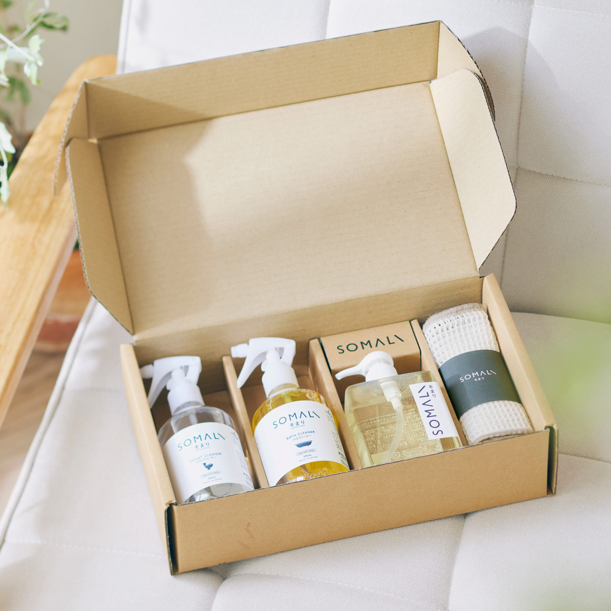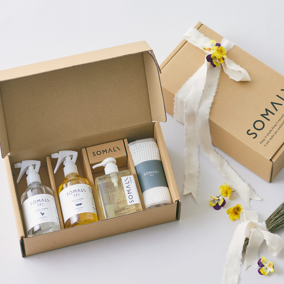 洗剤セット SOMALI そまり ギフトH 水回り 3点セット ( ギフトセット 台所用石けん トイレクリーナー バスクリーナー クロススポンジ 2枚 天然由来成分 プレゼント ギフト 贈り物 ソマリ 掃除用洗剤 掃除グッズ 掃除用品 おしゃれ )のレビュー