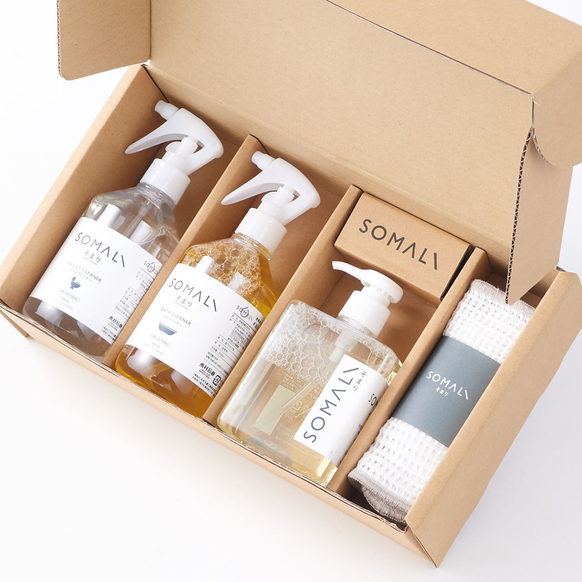 洗剤セット SOMALI そまり ギフトH 水回り 3点セット ( ギフトセット 台所用石けん トイレクリーナー バスクリーナー クロススポンジ 2枚 天然由来成分 プレゼント ギフト 贈り物 ソマリ 掃除用洗剤 掃除グッズ 掃除用品 おしゃれ )