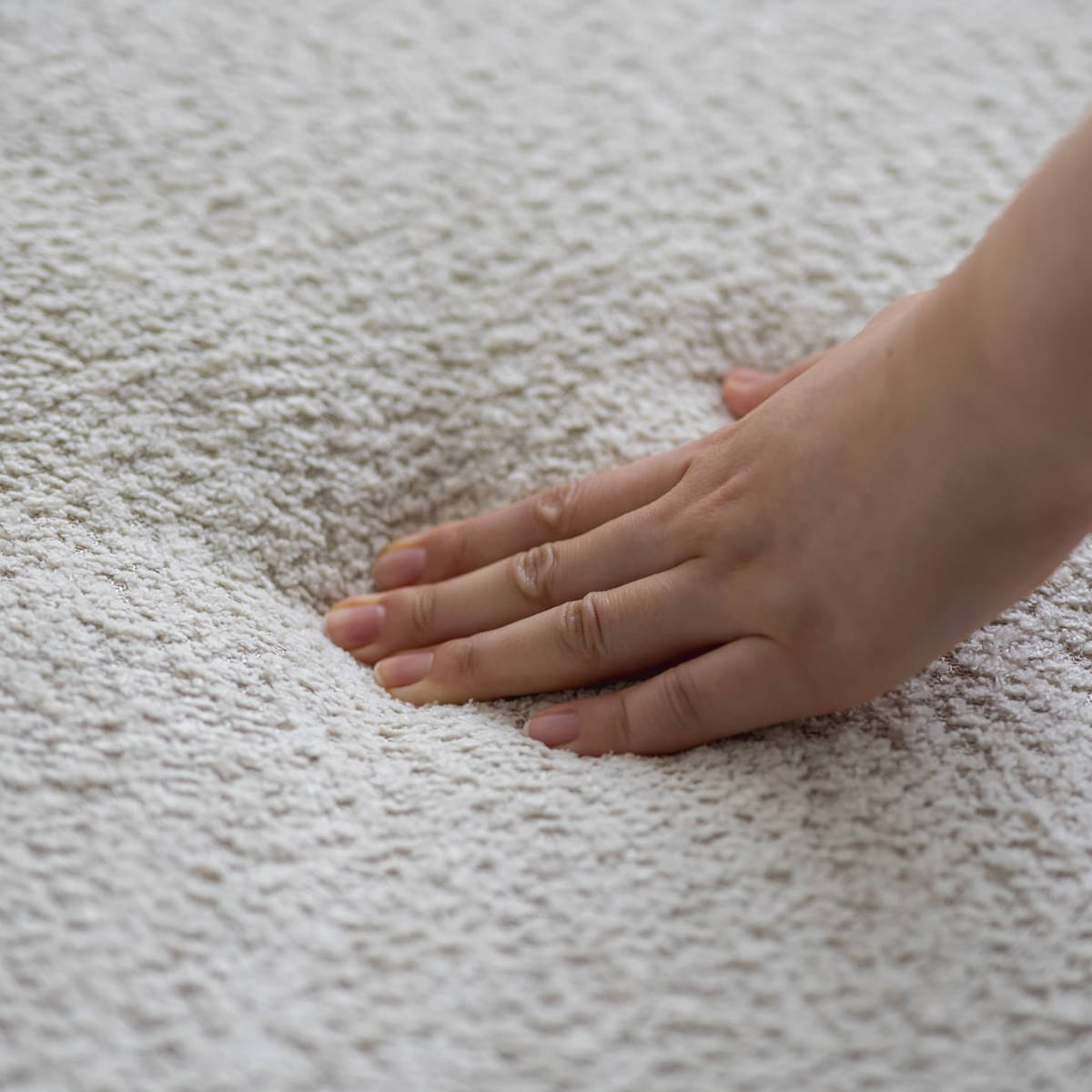 思わず触りたくなるモコモコとした立体感のある生地で、優しく温かみのある印象に仕上げています。