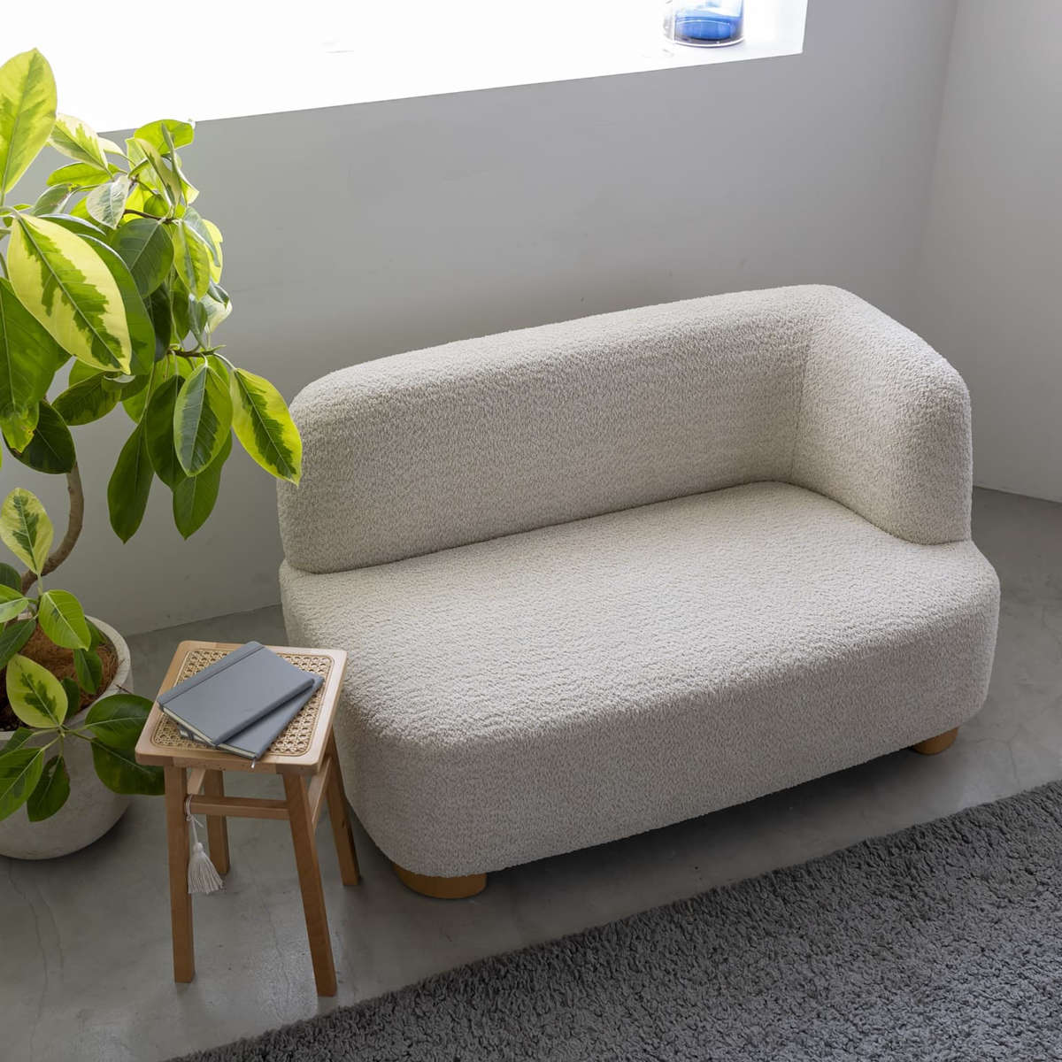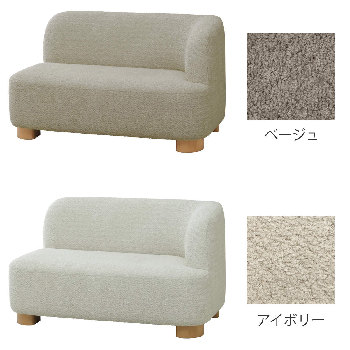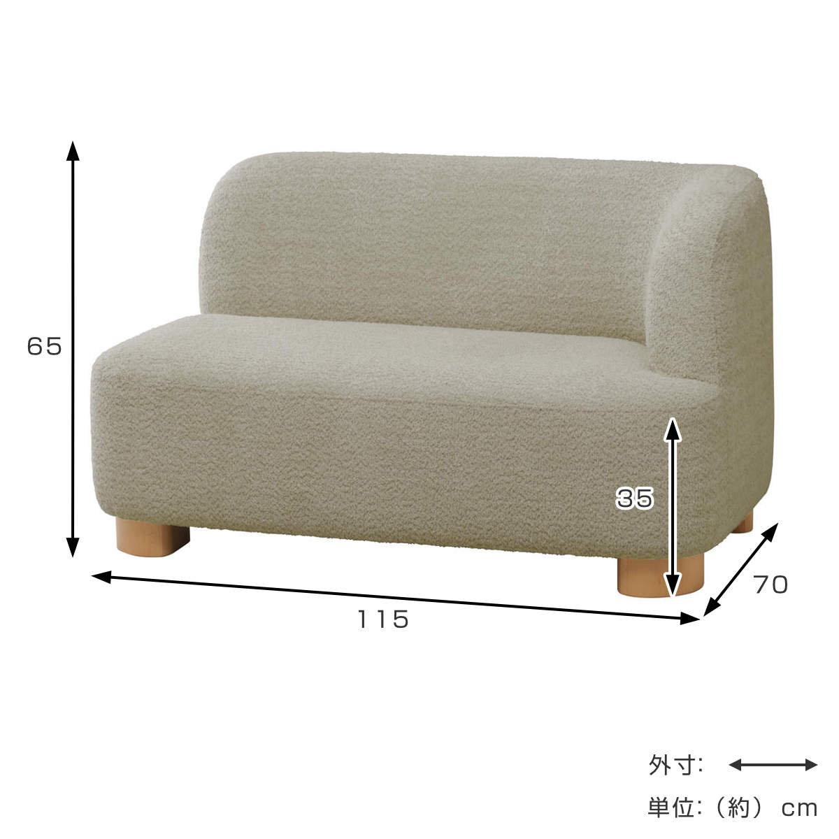ソファ 2人掛け 幅115cm 左肘タイプ コンパクト アームソファ アン ( 片肘 1人掛け カウチ L字 脚 取り外し ローソファ フロアソファ ふわふわ もこもこ 肌触り 天然木 北欧 ナチュラル ) 【アイボリー】