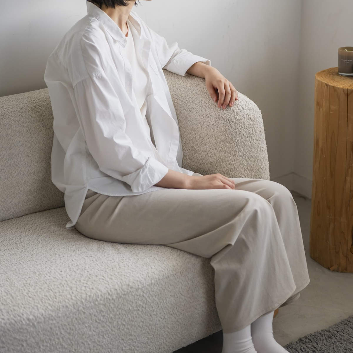 1~2人暮らしにぴったりな、コンパクトで扱いやすいサイズ感です。ソファの圧迫感を軽減してくれる片側アームレスデザインで、動線をしっかり確保することができ、お部屋を広く感じさせてくれます。