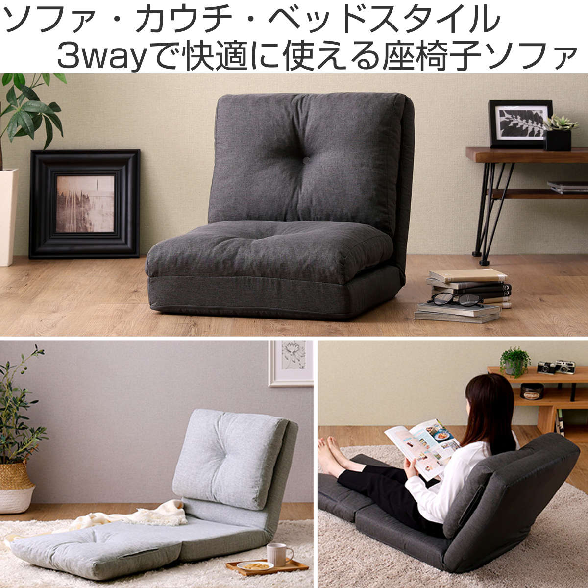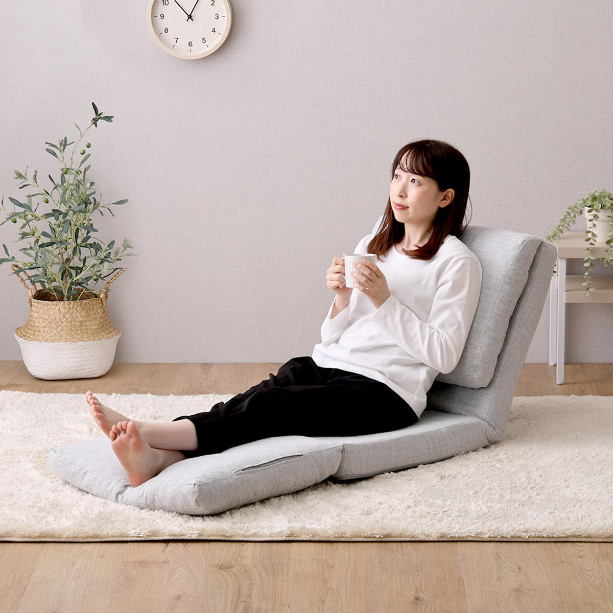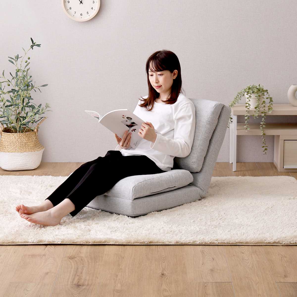 座椅子 1人掛け 3wayソファ 幅55cm Paljon ( 形が変えられる ソファ リクライニング フロアチェア カウチ フラット ベッド 折りたたみ コンパクト ファブリック 無地 シンプル おしゃれ ) 【ライトグレー】