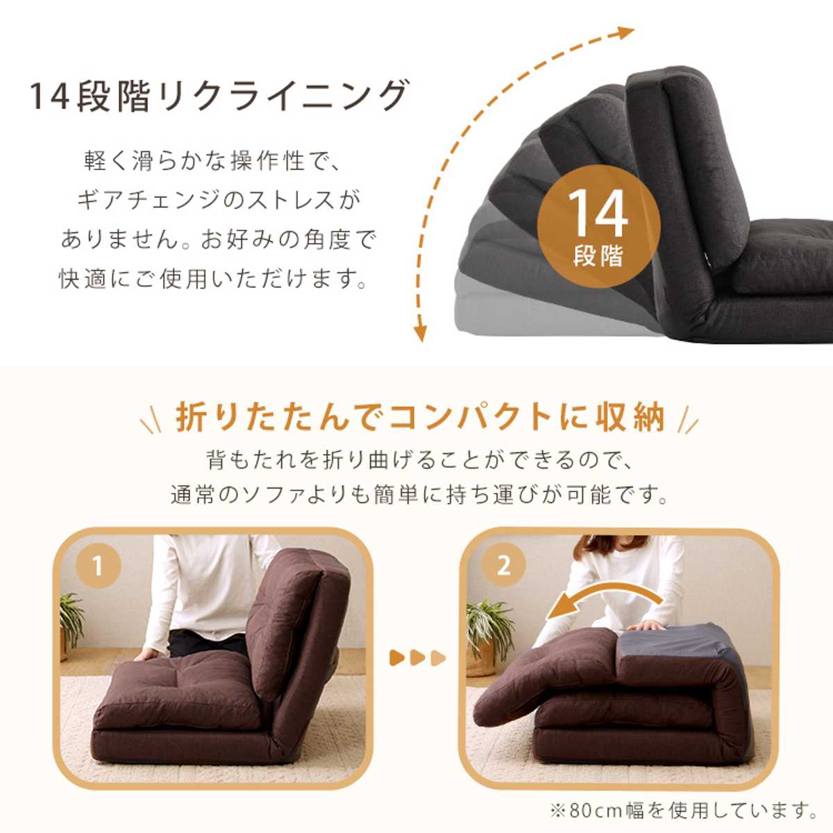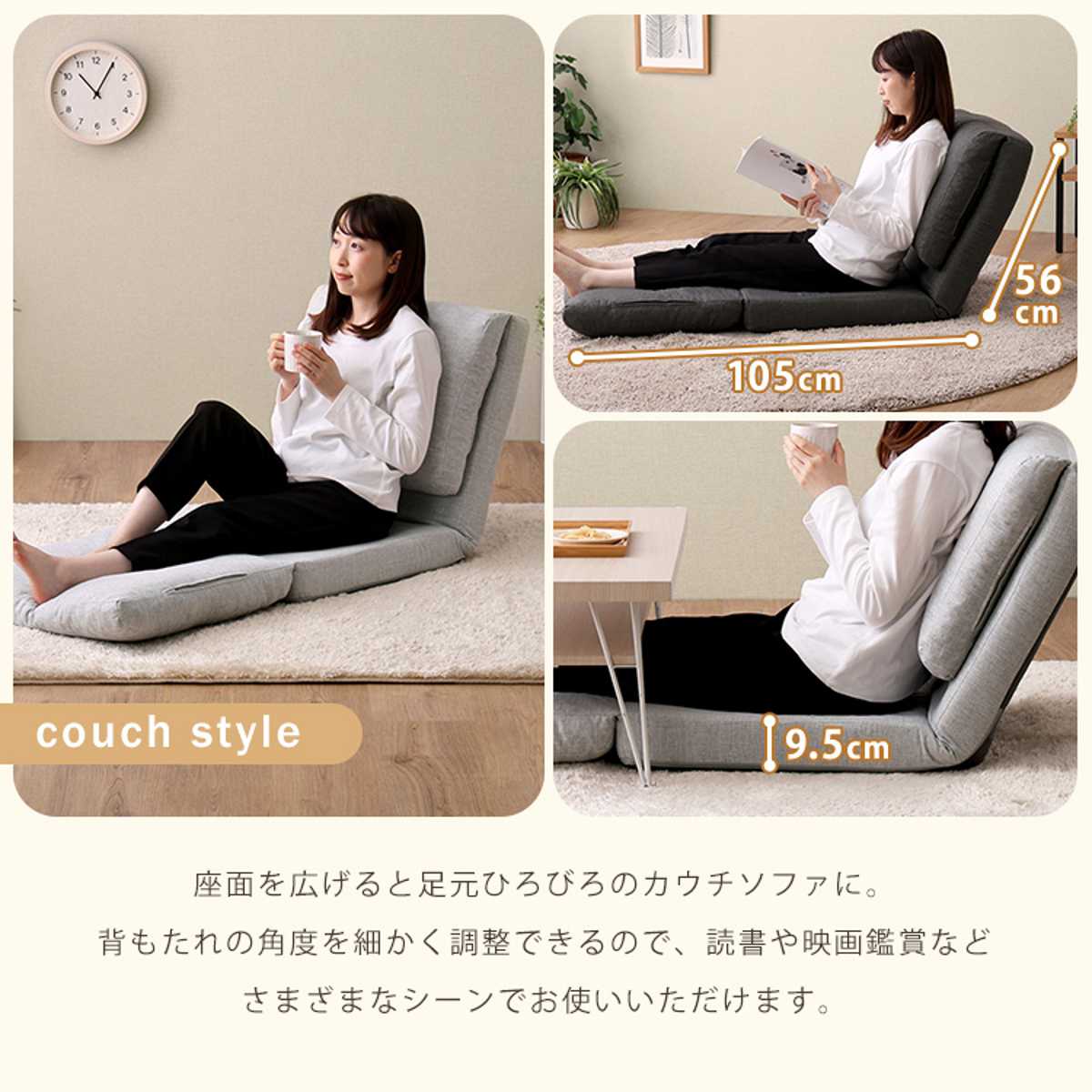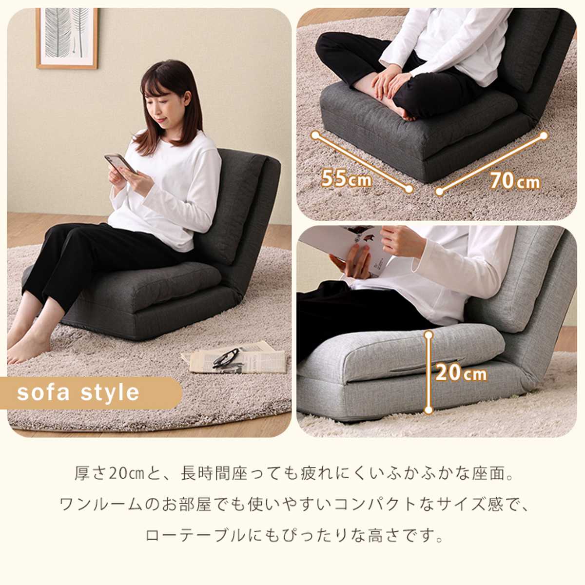 座椅子 1人掛け 3wayソファ 幅55cm Paljon ( 形が変えられる ソファ リクライニング フロアチェア カウチ フラット ベッド 折りたたみ コンパクト ファブリック 無地 シンプル おしゃれ ) 【ライトグレー】