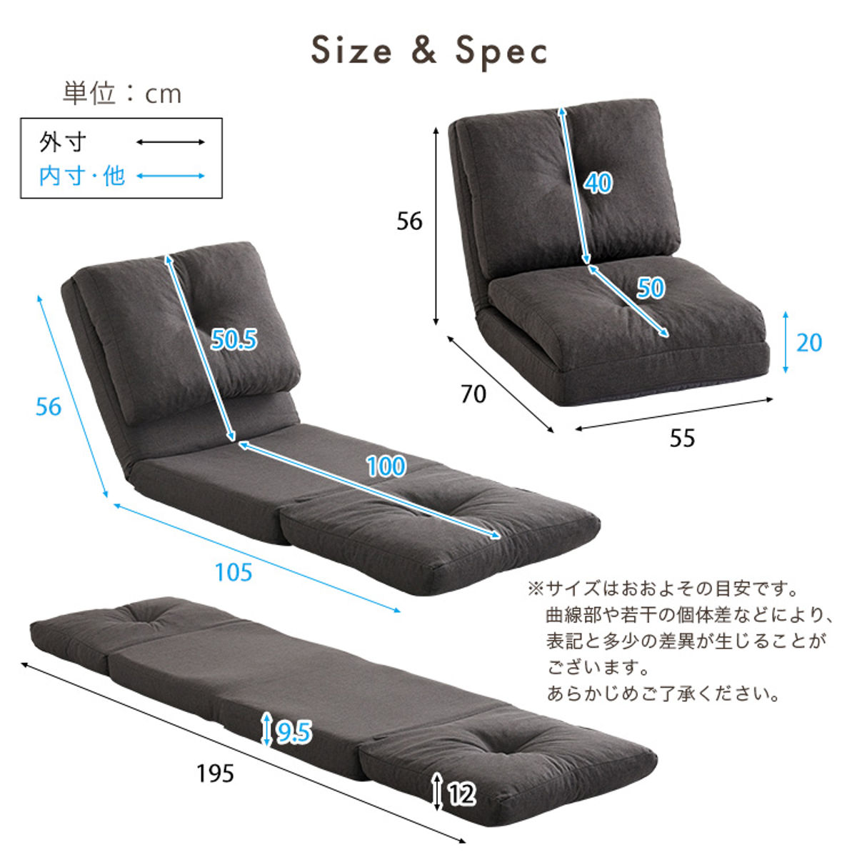 幅55cmの1人掛けにちょうどいいサイズです。コンパクトながら、ソファ・カウチ・ベッドスタイルと形を変えられます。背もたれの角度も変えられるので、お好みのスタイルでリラックスして過ごせます。