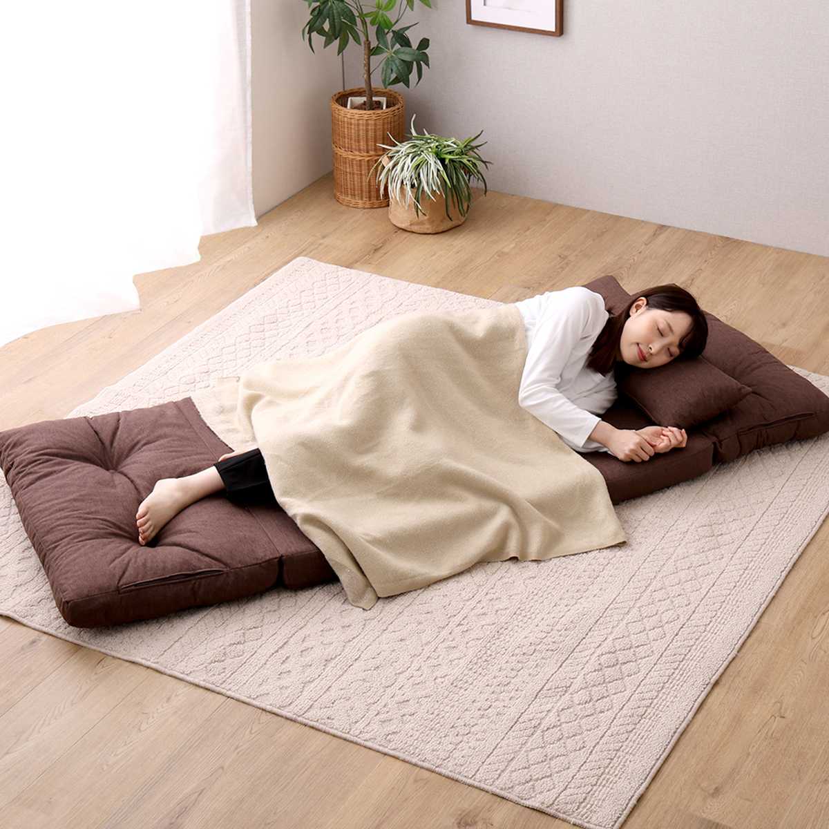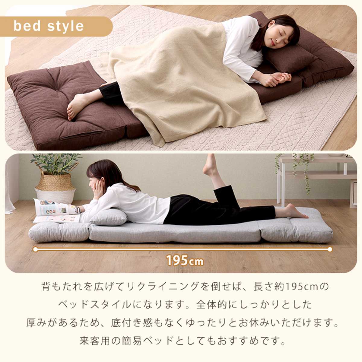座椅子 1.5人掛け 3wayソファ 幅80cm Paljon ( 形が変えられる ソファ リクライニング フロアチェア カウチ フラット ベッド ゆったり ワイド 折りたたみ コンパクト ファブリック 無地 シンプル おしゃれ ) 【ブラウン】