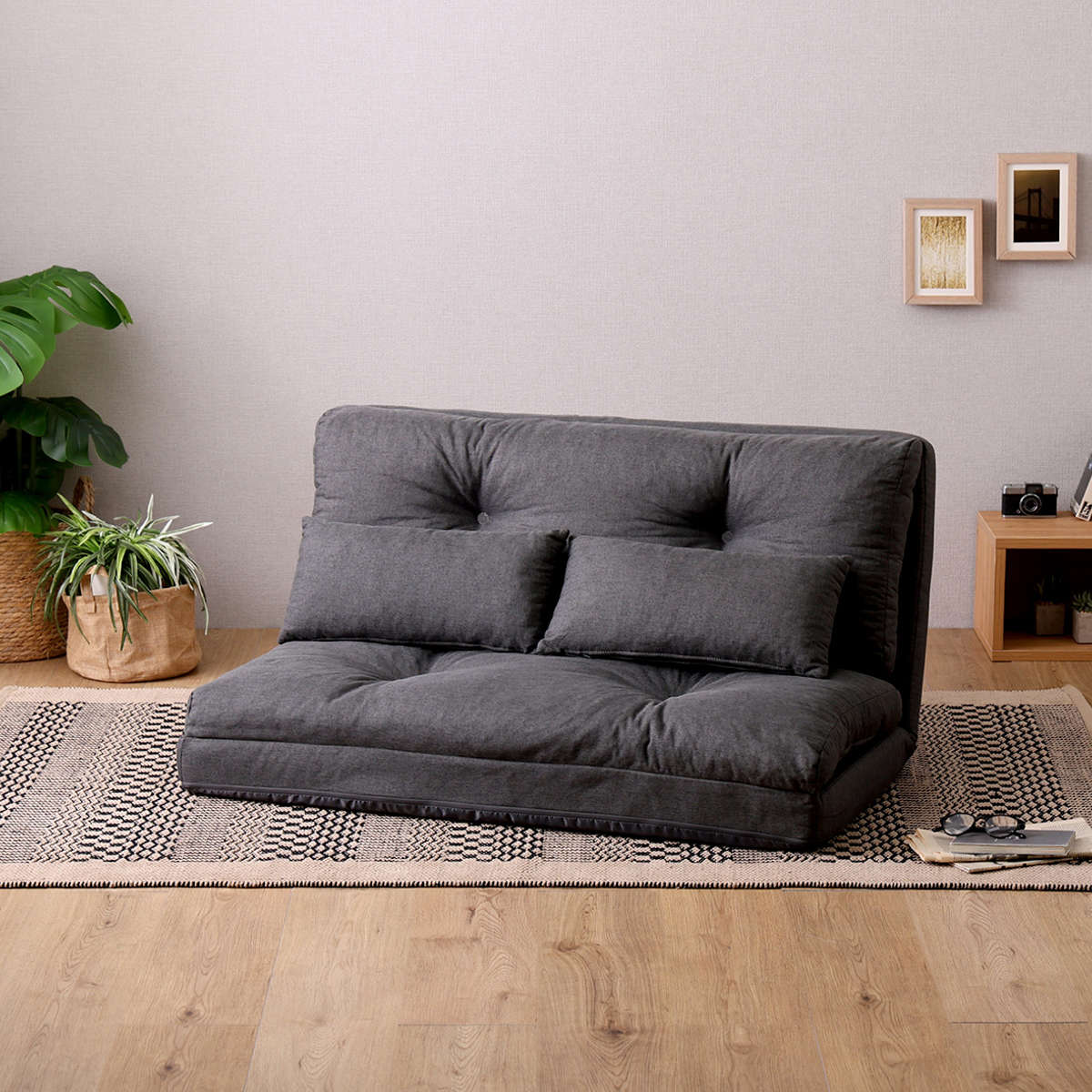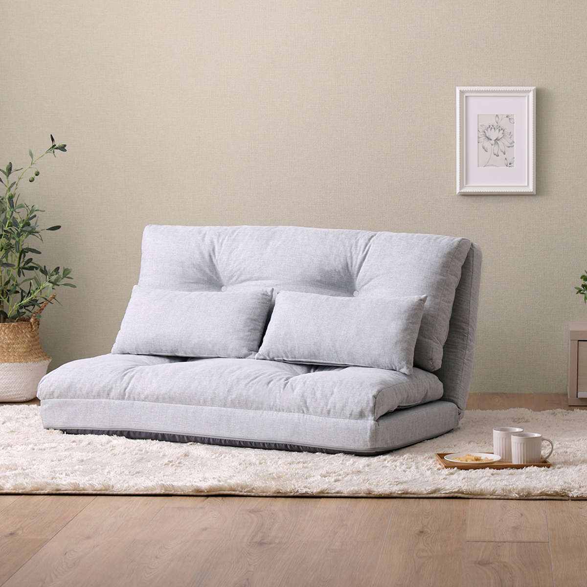 座椅子 2人掛け 3wayソファ 幅110cm Paljon ( 形が変えられる ソファ リクライニング フロアチェア カウチ フラット ベッド ゆったり ワイド 折りたたみ ファブリック 無地 シンプル おしゃれ ) 【ライトグレー】