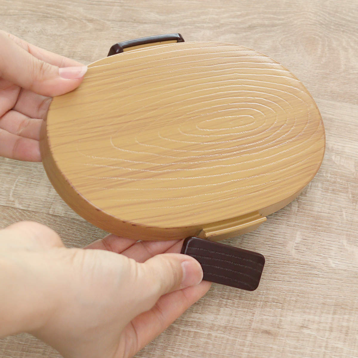 お手入れや扱いが難しそうな、曲げわっぱとは違い樹脂製で木目調のお弁当箱。少しハードルを下げて曲げわっぱ風のお弁当箱で毎日の家事を少しラクに。飽きのこないデザイン、なぜかいつもと同じお弁当でも美味しそうに見えます。