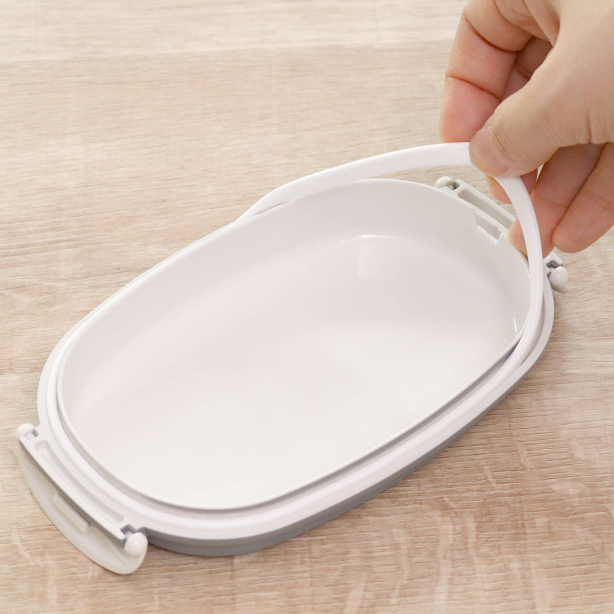 | 材質 | フタ・上段・本体:PET、ABS樹脂 バックル:ABS樹脂 パッキン:シリコーンゴム |