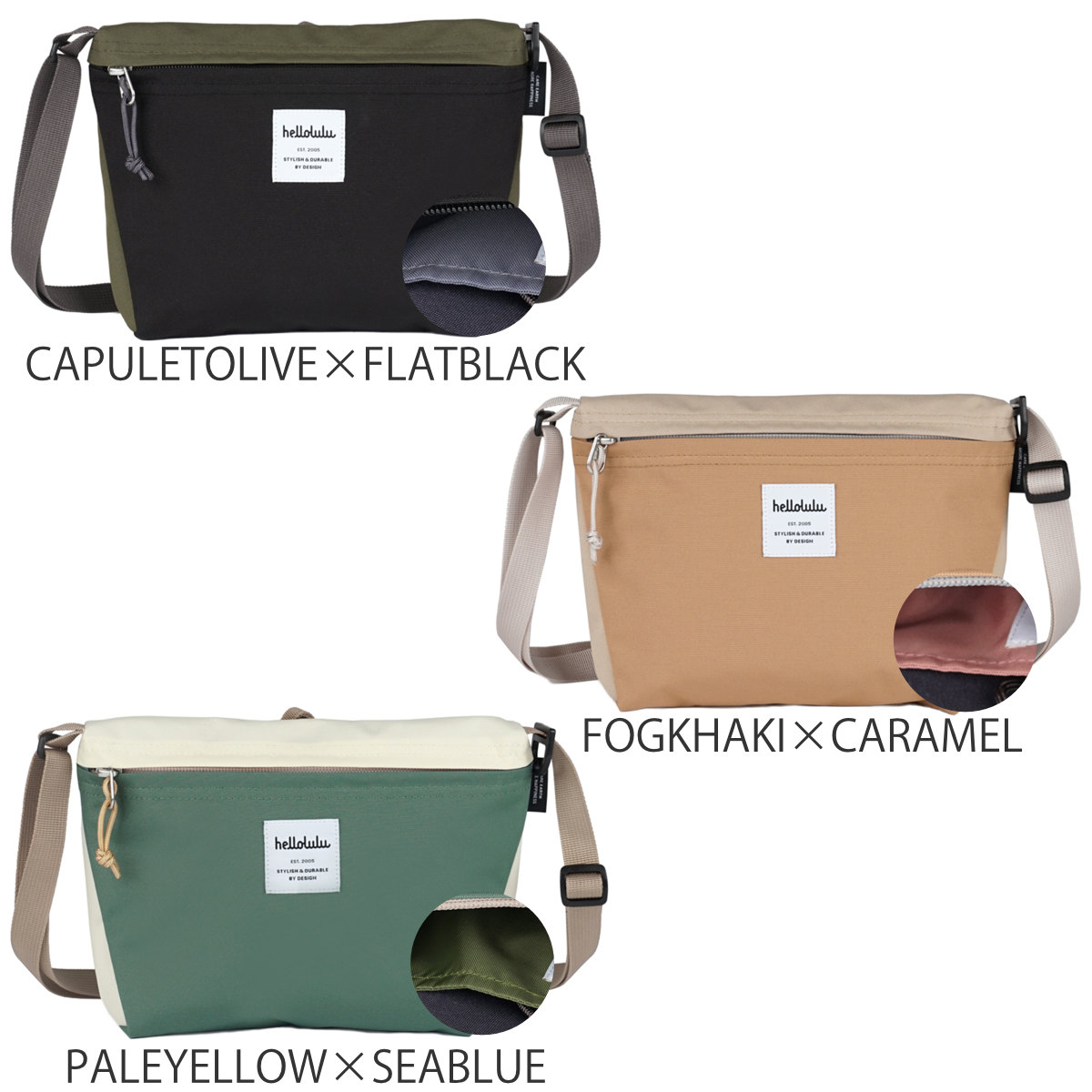 | 種類 | CAPULETOLIVE×FLATBLACK、FOGKHAKI×CARAMEL、PALEYELLOW×SEABLUE |