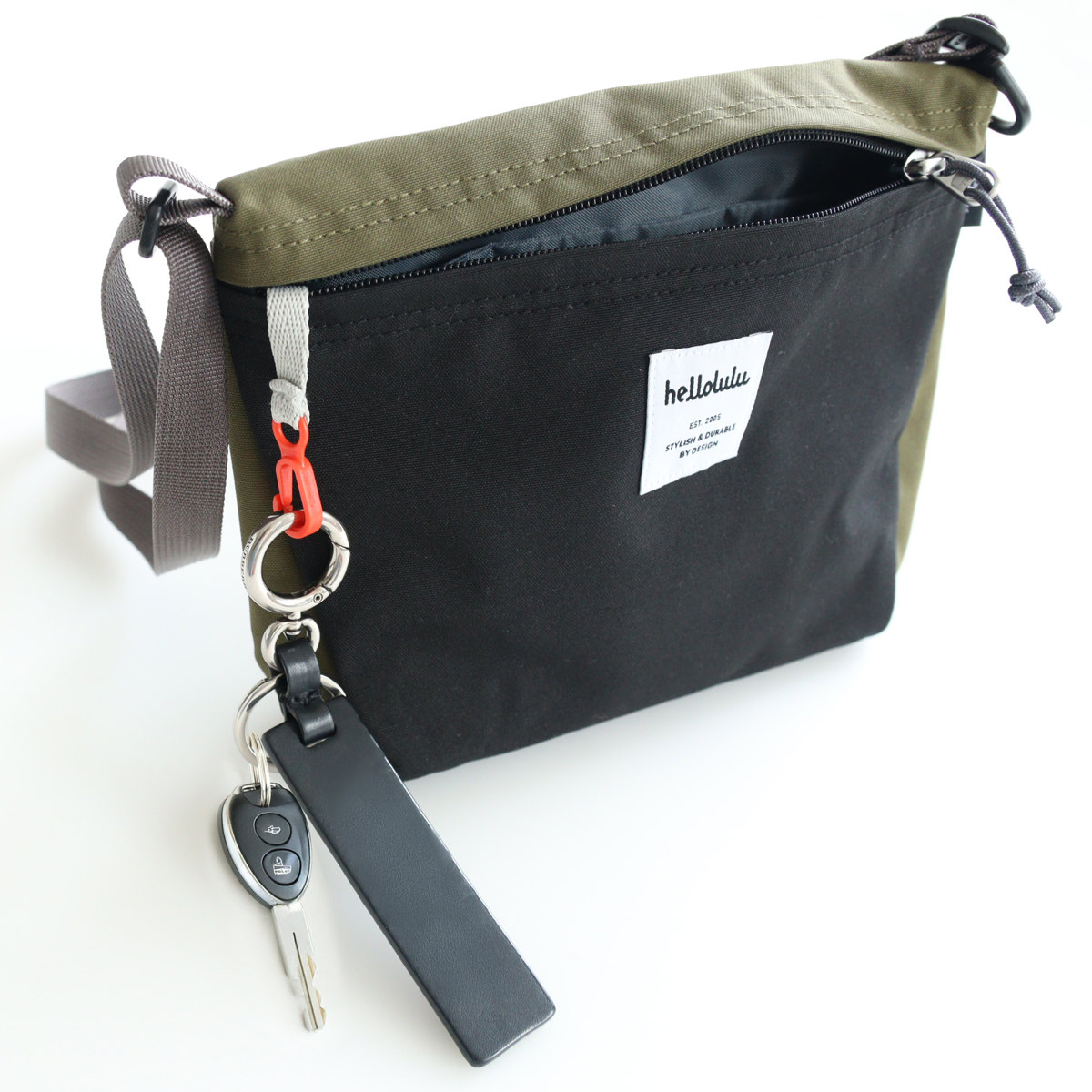 内側にはスリップポケットとキークリップが付いています。小物もすっきり収納でき、鍵の迷子防止や落とし物対策にもなり便利です。