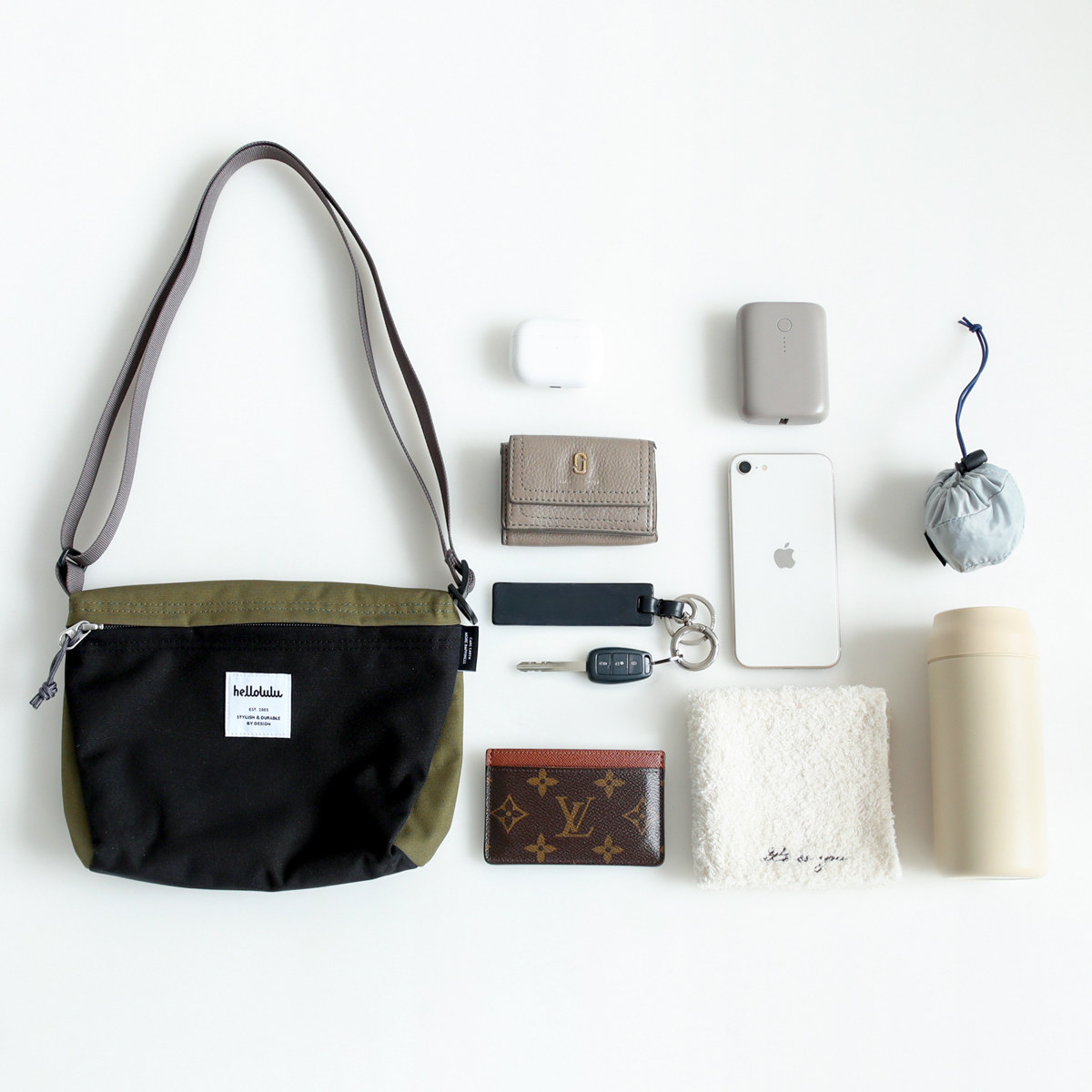 いつもの荷物に水筒・エコバッグ・モバイルバッテリーも入り、コンパクトながらも見た目以上に収納力があります。ちょっとしたレジャーやお子様とのお出かけにも大活躍します。