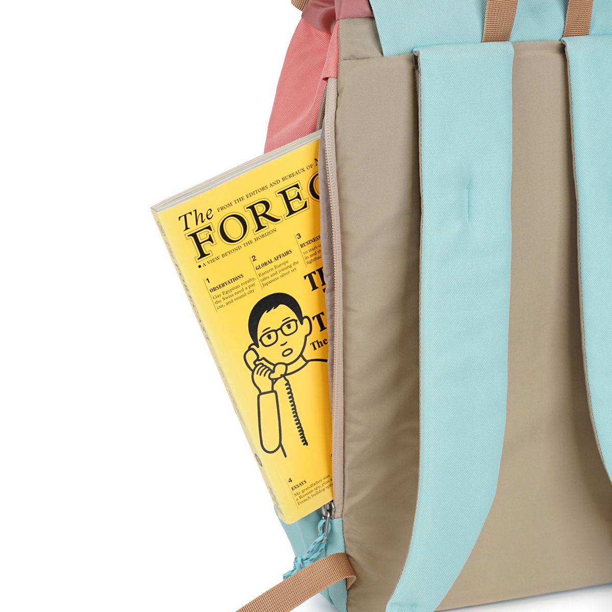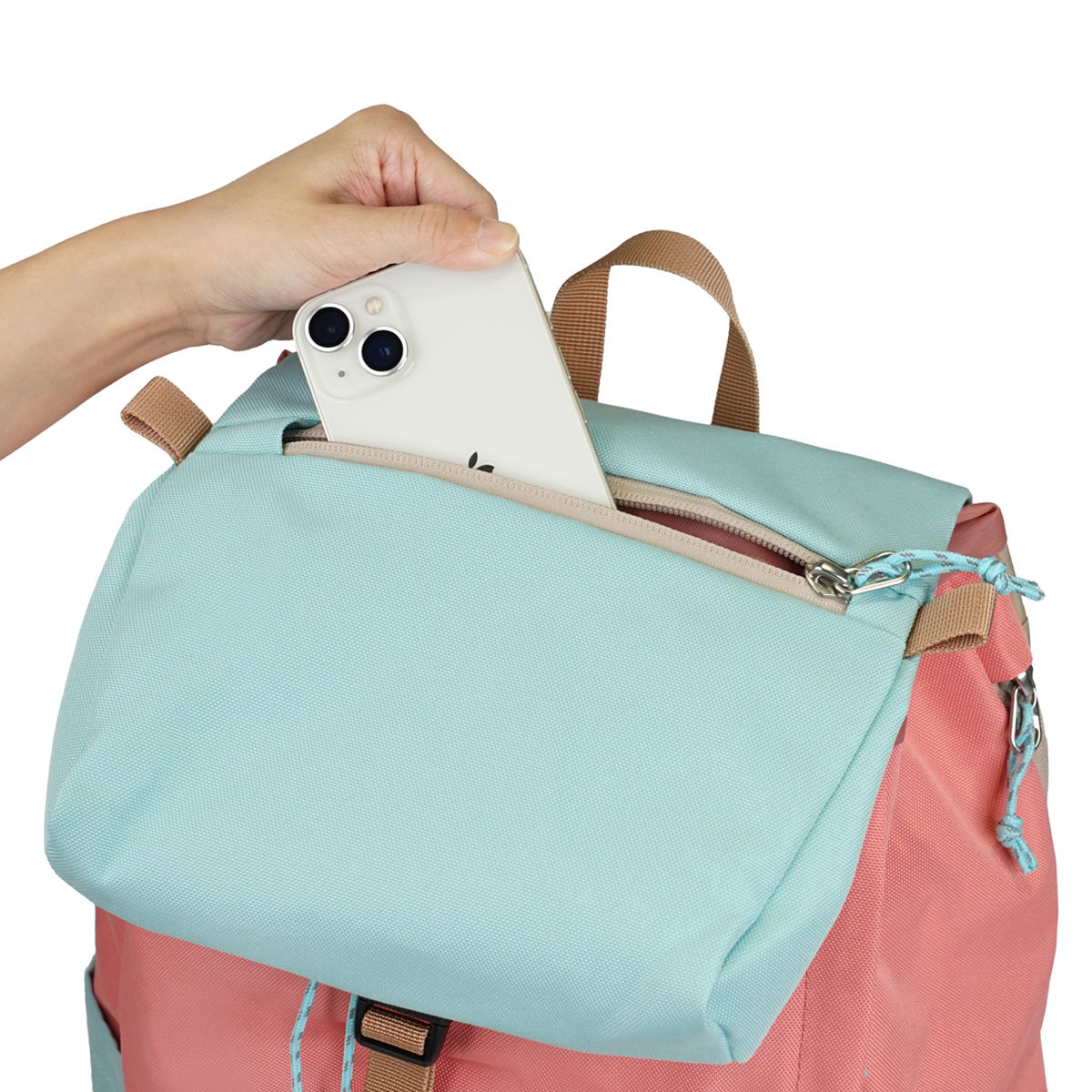 上部フラップには、スマホなどの小物収納に便利なファスナーポケット付きです。