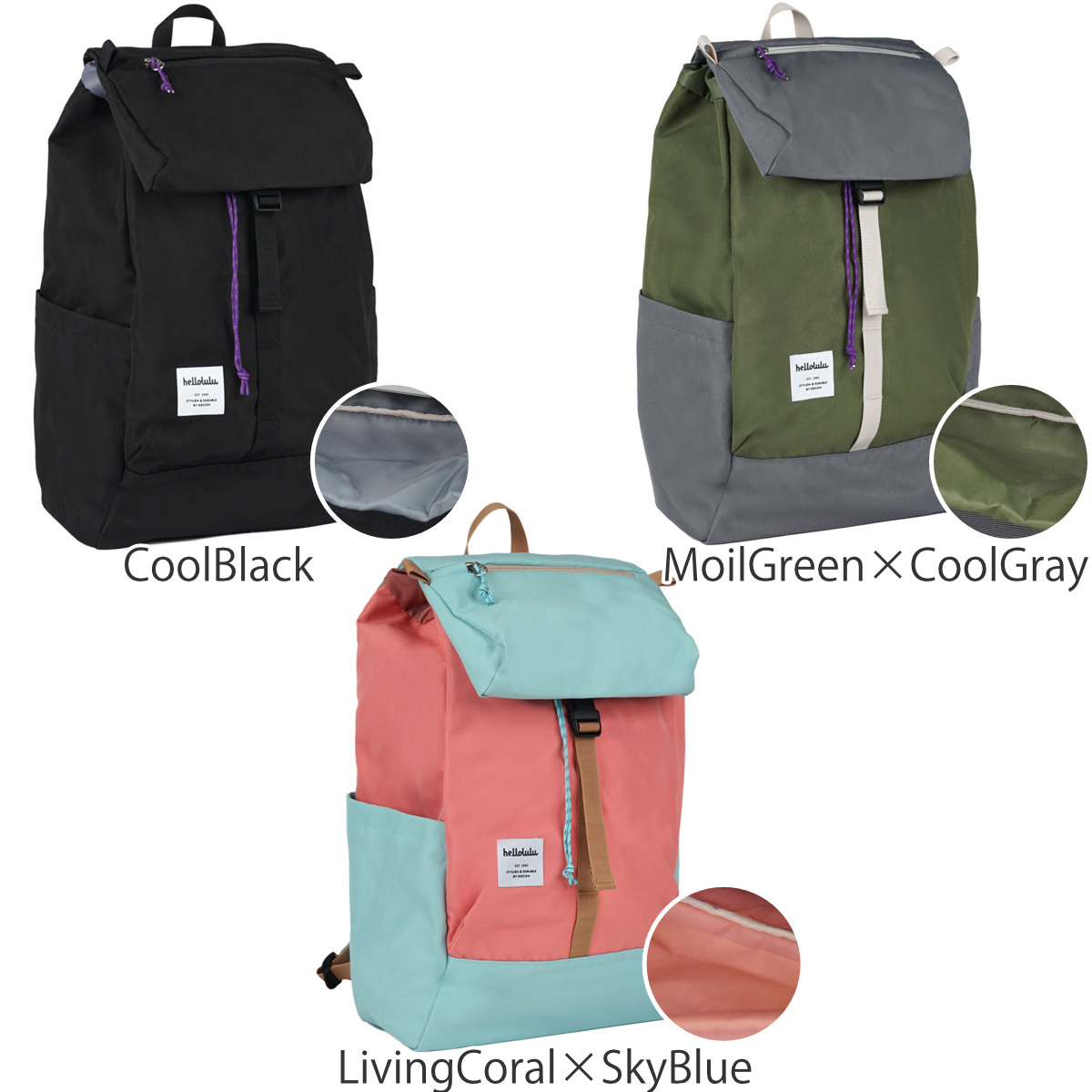 種類CoolBlack、MoilGreen×CoolGray、LivingCoral×SkyBlue