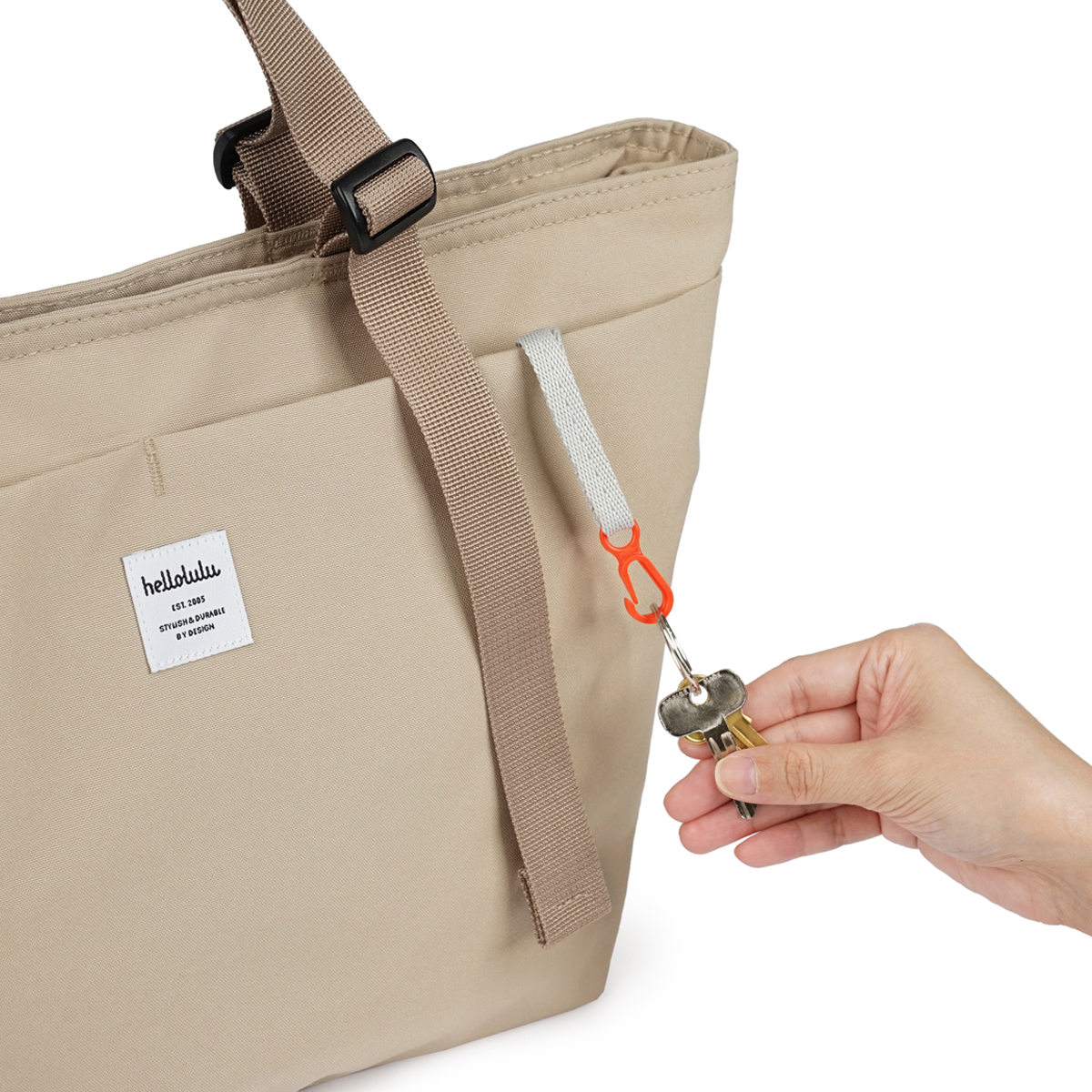前面にも、文庫本も入る大きなポケットが付いています。ポケット内側にはキークリップ付きで、鍵やイヤホンなどさっと取り出したい物の収納に便利です。