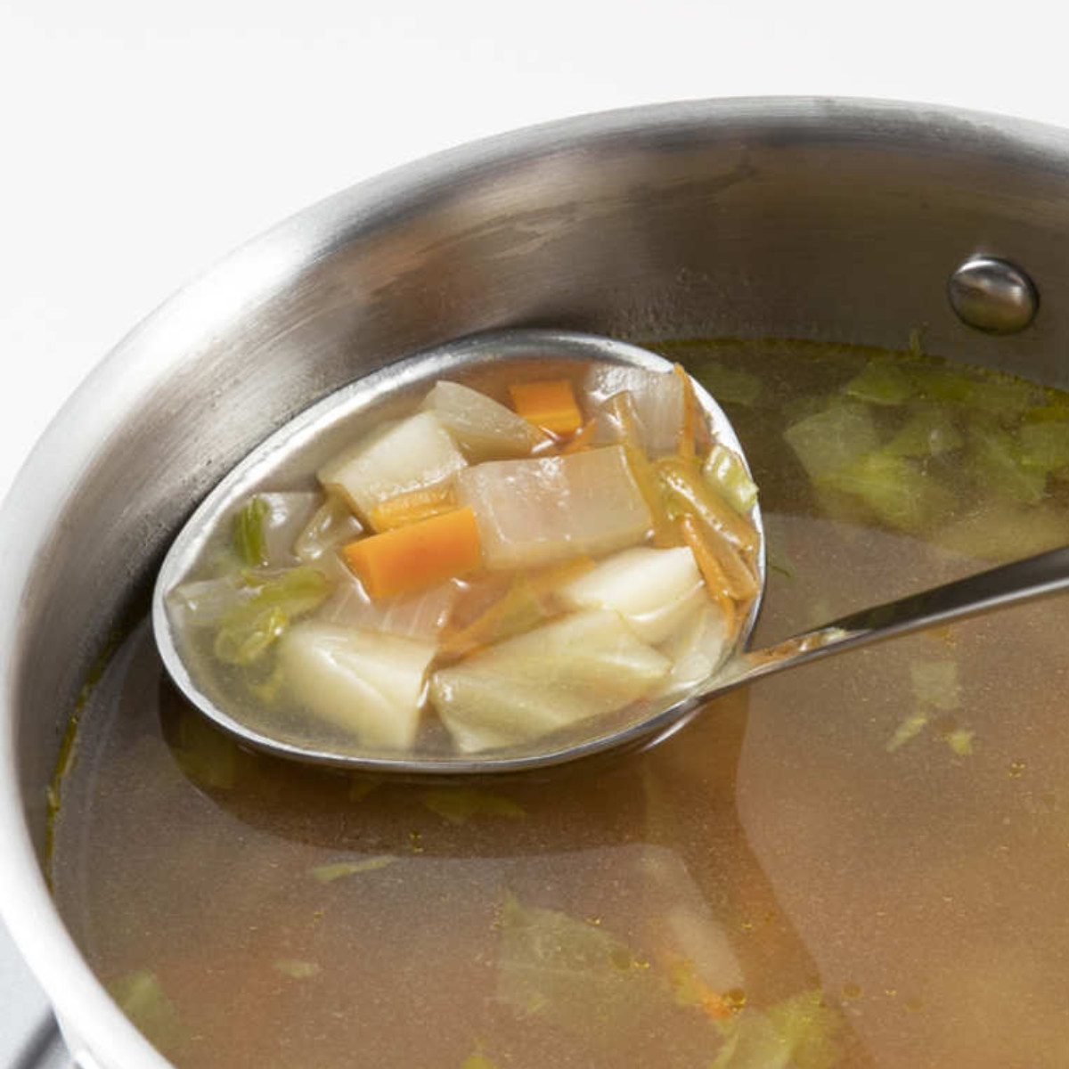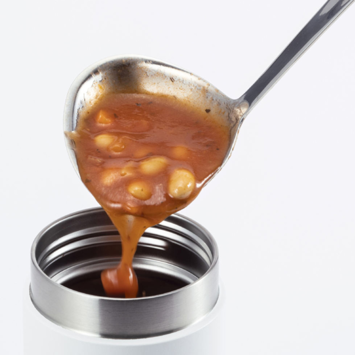 フチ付きなので液だれしにくく、注ぎやすくなっています。スープなどの汁物を口の小さい容器に注ぐのもスムーズにできます。