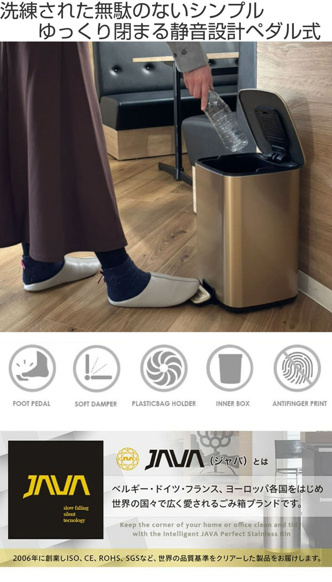 ゴミ箱 12L JAVA ステンレス製 ペダル ( ごみ箱 12リットル ふた付き 小さい ステンレス ペダル式 インナーボックス付き キッチン 部屋用 消臭剤ポケット付き )