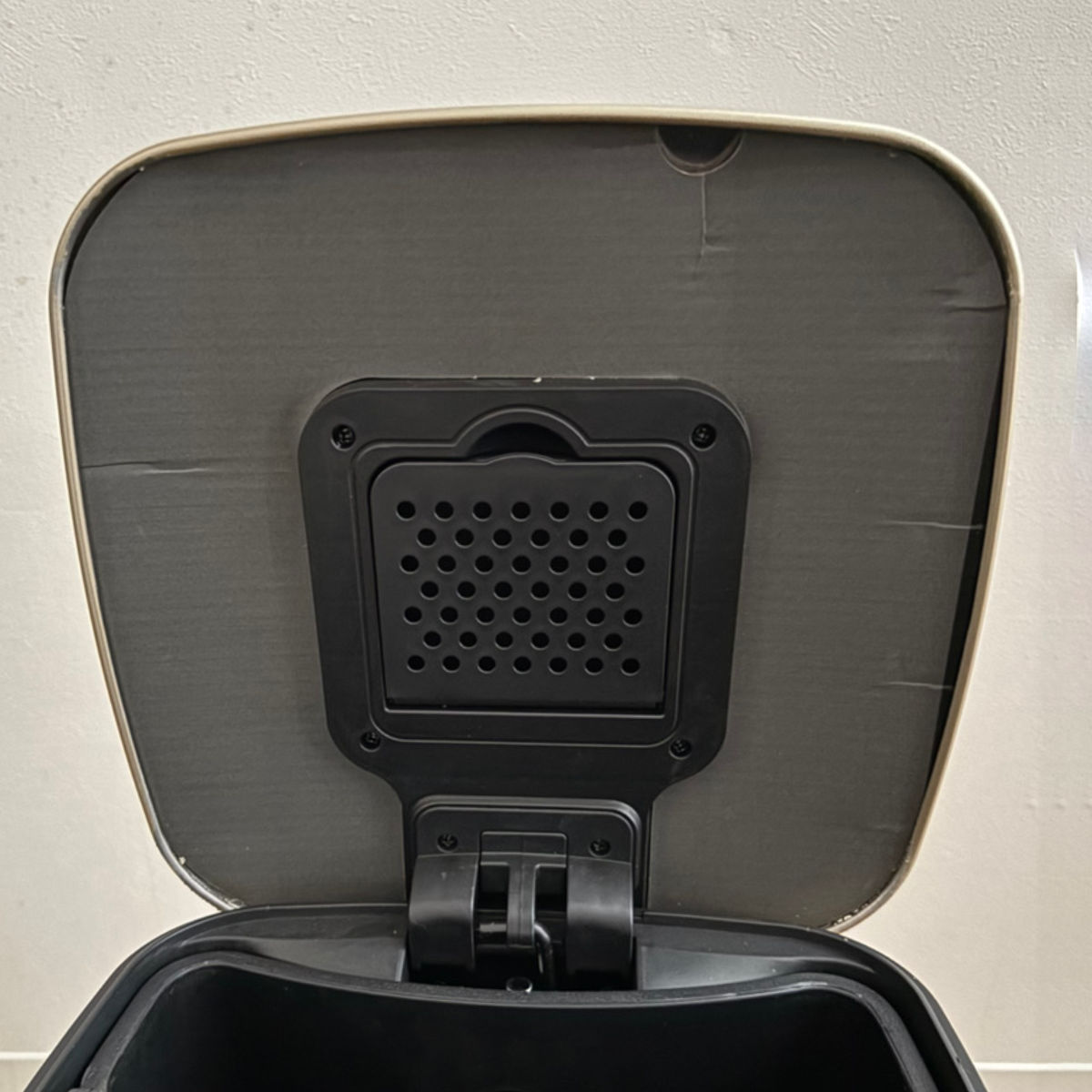 ふたの裏側には、市販の脱臭剤をセットできるポケットが付いています。