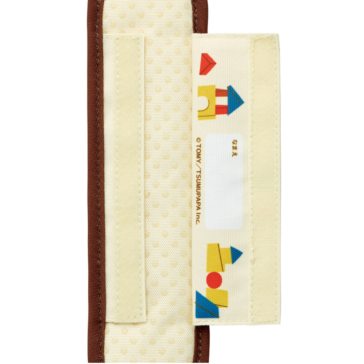 面ファスナーの内側にはお名前が書けるタグが付いています。タグにはかわいいイラスト付きで、お子様に喜んでいただけます。通園や通学時に、他のお友達と間違えることなくお使いいただけます。