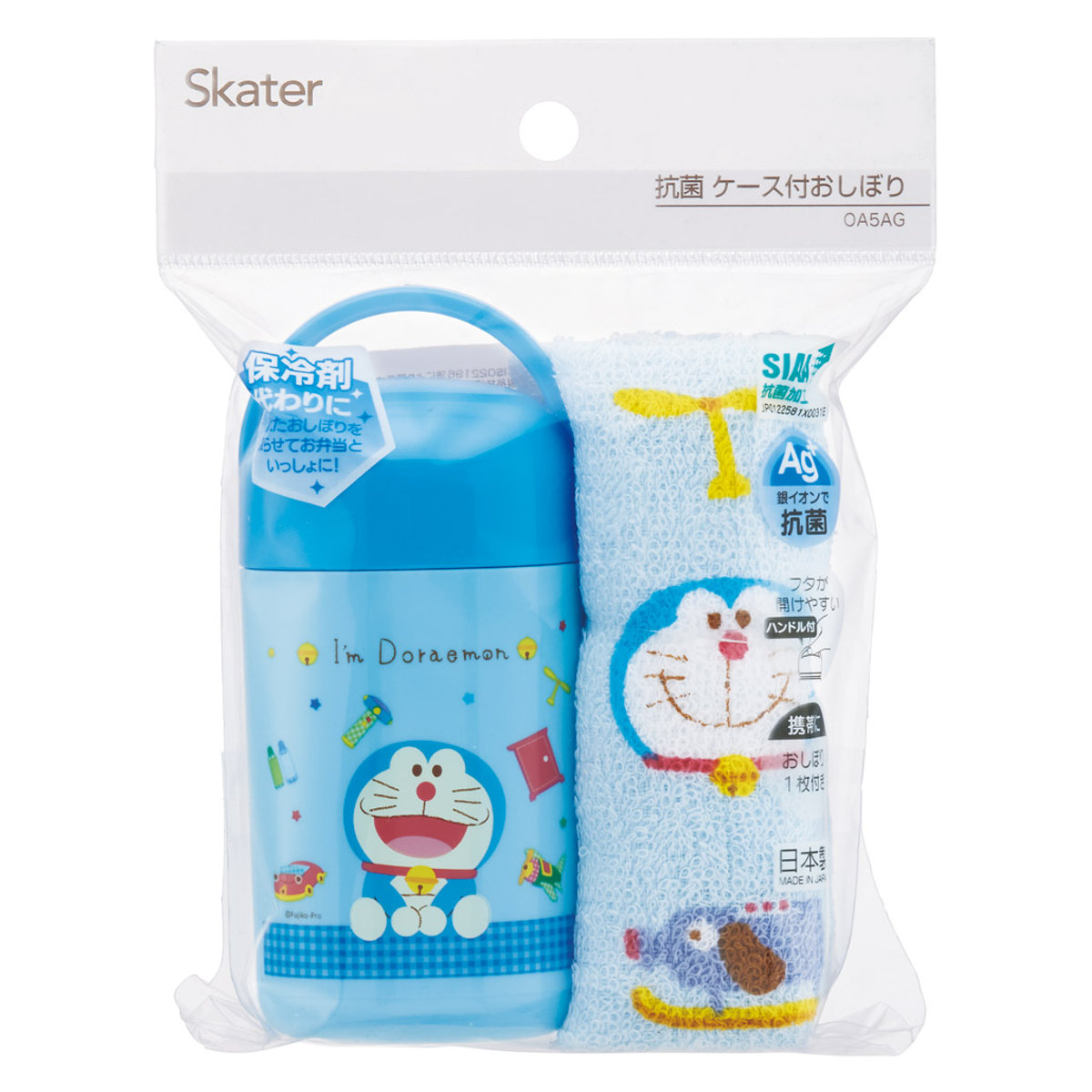 ●ドラえもんの抗菌加工が施されたケースとおしぼりのセットです。