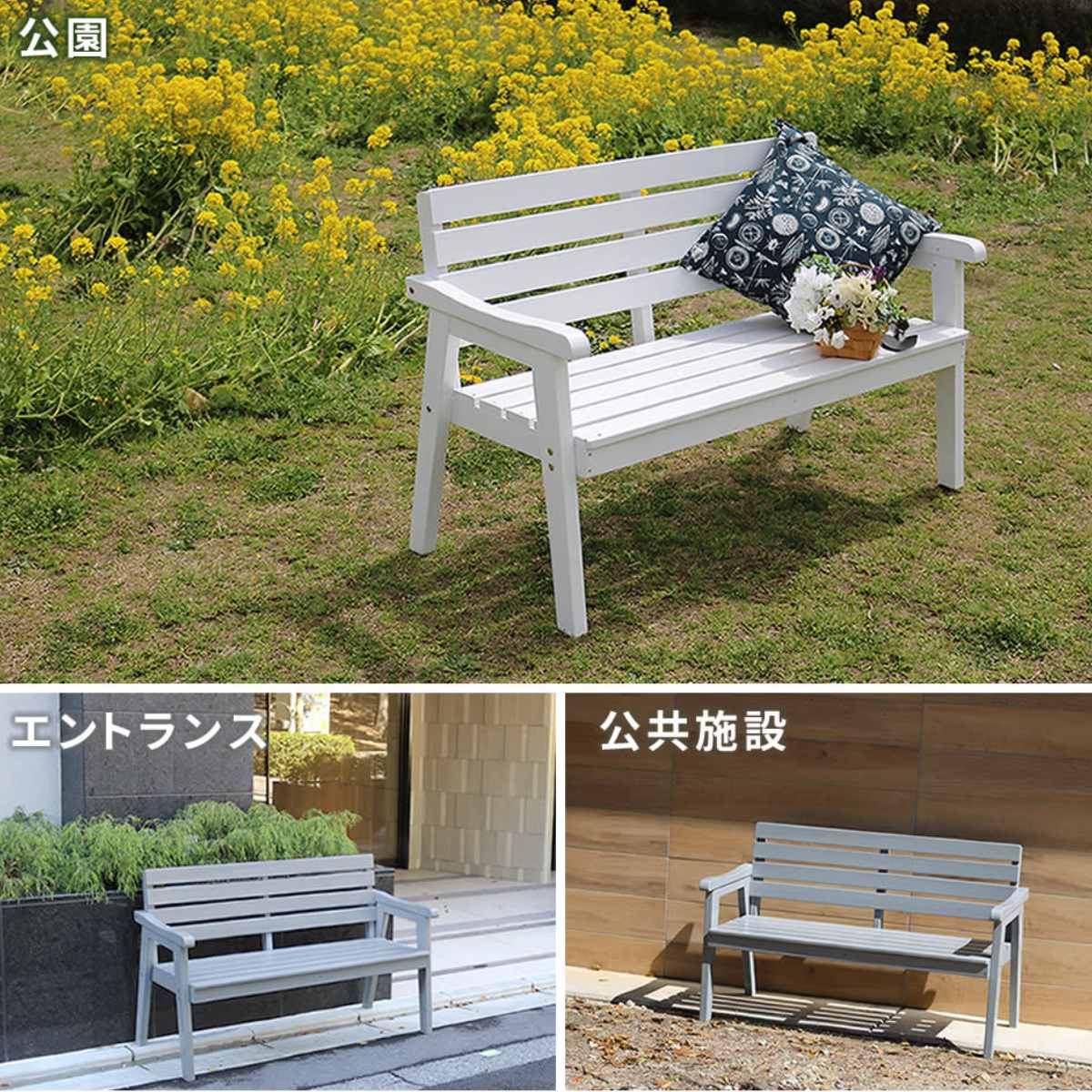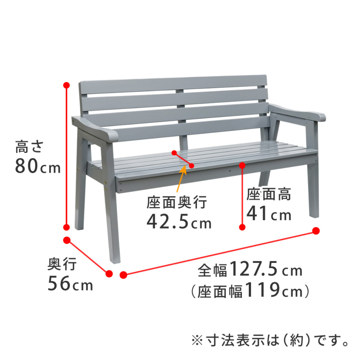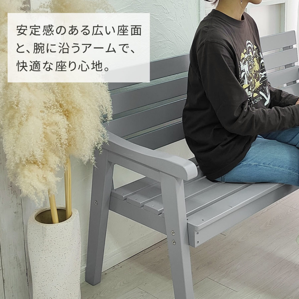 ベンチ 天然木製ベンチ 幅130cm Elan エラン ( 木製 屋外 ウッドチェア ウッドベンチ 庭 バルコニー 2人掛け 天然木 庭先 ガーデンファーニチャー 椅子 長椅子 ガーデン おしゃれ オブジェ 木 ウッド ) 【グレー】