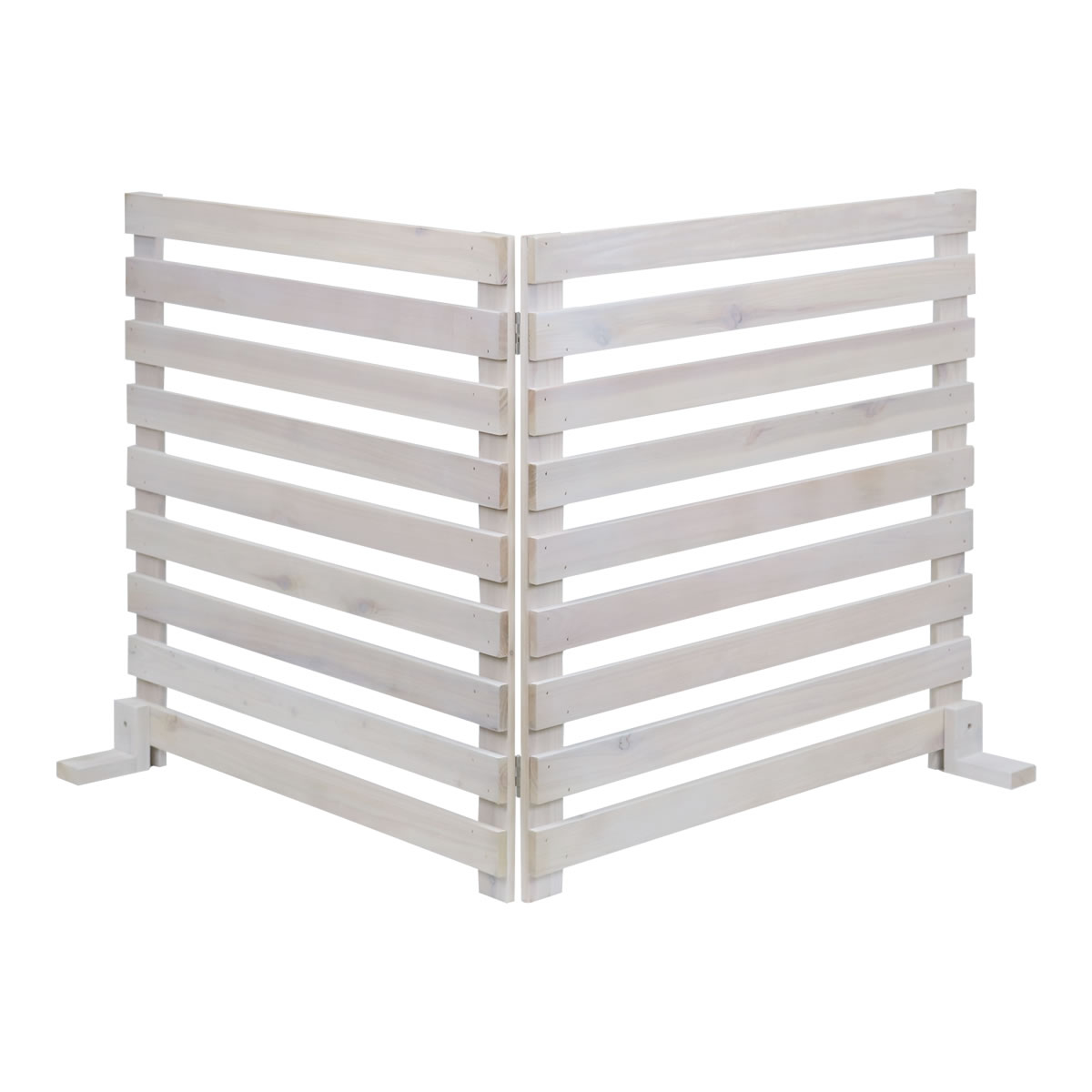 フェンス 木製 折り畳めるウッドフェンス 142×71cm 横ボーダー ( ガーデンフェンス 柵 折りたたみ 2連 園芸 エクステリア 雑貨 ウッドフェンス 花壇 庭 ベランダ バルコニー ガーデニング 木製ガーデンフェンス 蝶番 インテリア ) 【ホワイト】