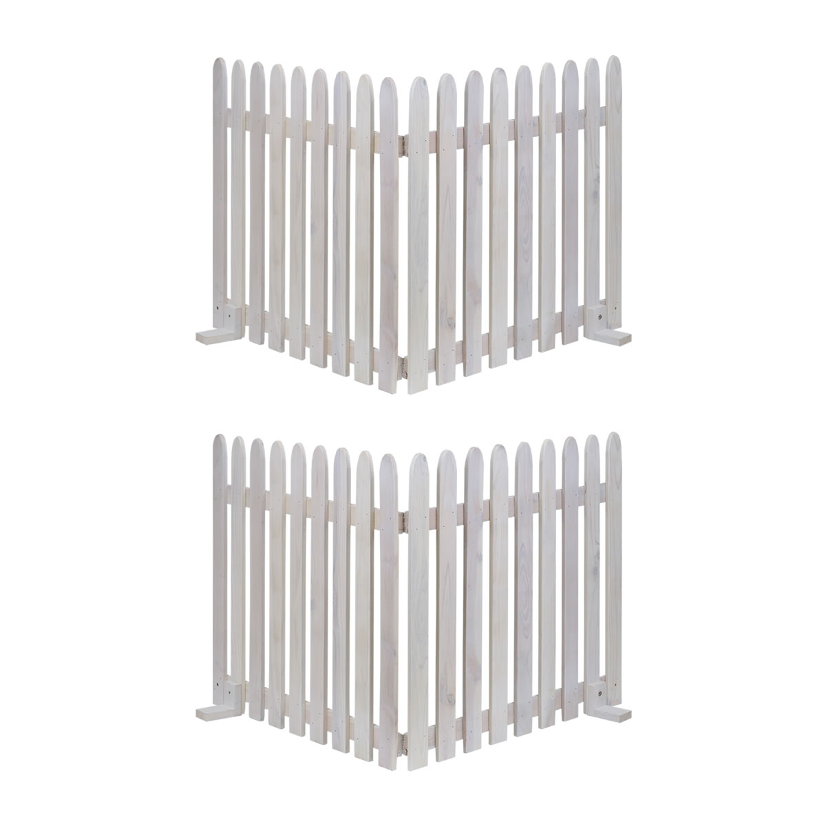 フェンス 木製 折り畳めるウッドフェンス 142×71cm 縦ストライプ 2枚組 ( ガーデンフェンス 柵 折りたたみ 2連 園芸 エクステリア 雑貨 ウッドフェンス 花壇 庭 ベランダ バルコニー ガーデニング 木製ガーデンフェンス 蝶番 ) 【ホワイト】