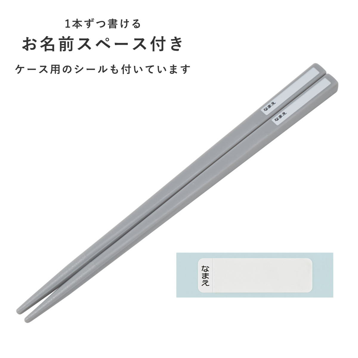 お箸の裏には名前を書き込めるスペース付きです。ケースにも名前が書けるシールが付いています。保育園や幼稚園でお友達と間違えたり、なくなる心配が減ります。