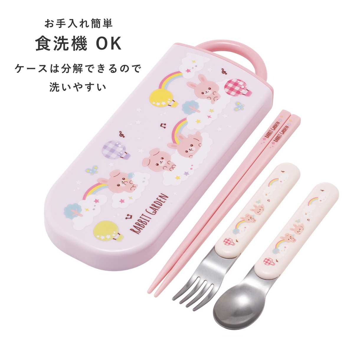 トリオセット 抗菌食洗対応トリオセット ラビットガーデン ( うさぎ 食洗機対応 カトラリーセット お箸 AG 銀 抗菌 子供 日本製 食洗機OK カトラリー お弁当 弁当 幼稚園 保育園 給食 キッズ 抗菌加工 )