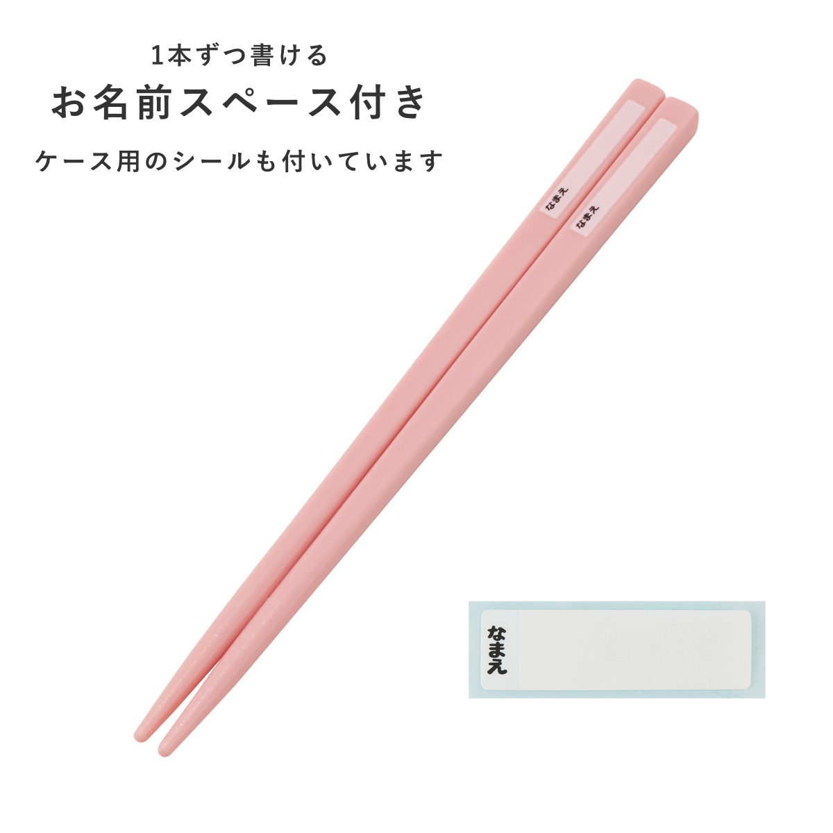 お箸には1本ずつ名前を書き込める名前スペースがあります。ケース用のシールも付いています。