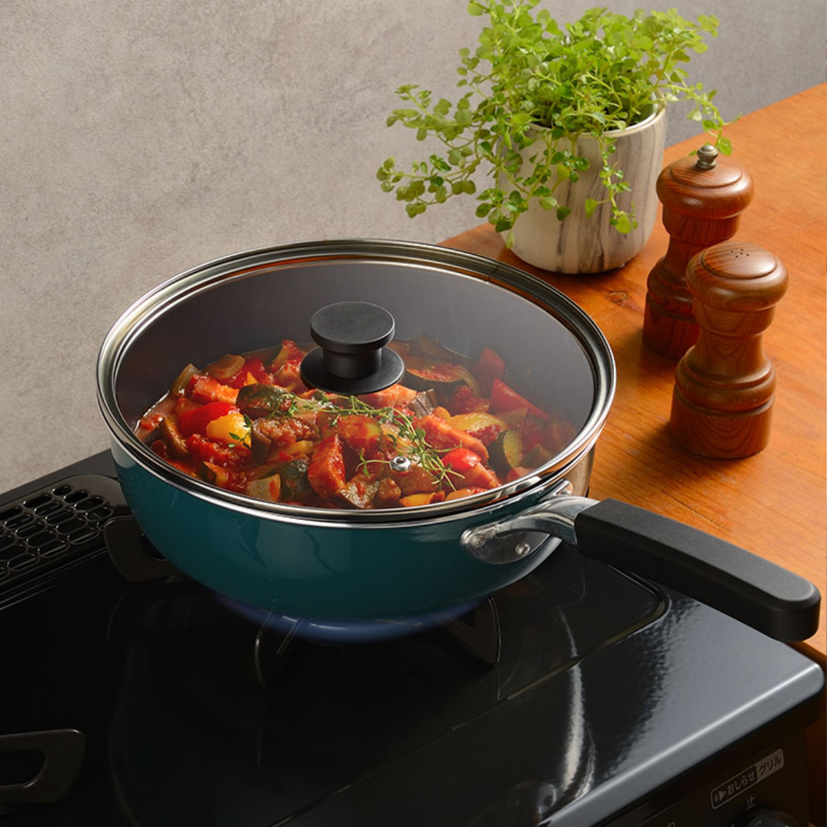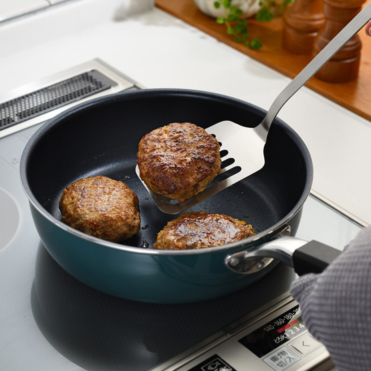 焼く・炒める・煮る・茹でる・揚げる調理にマルチに使用できる深型設計なので、様々な調理に大活躍します。ガス火だけでなく、IHにも対応しています。