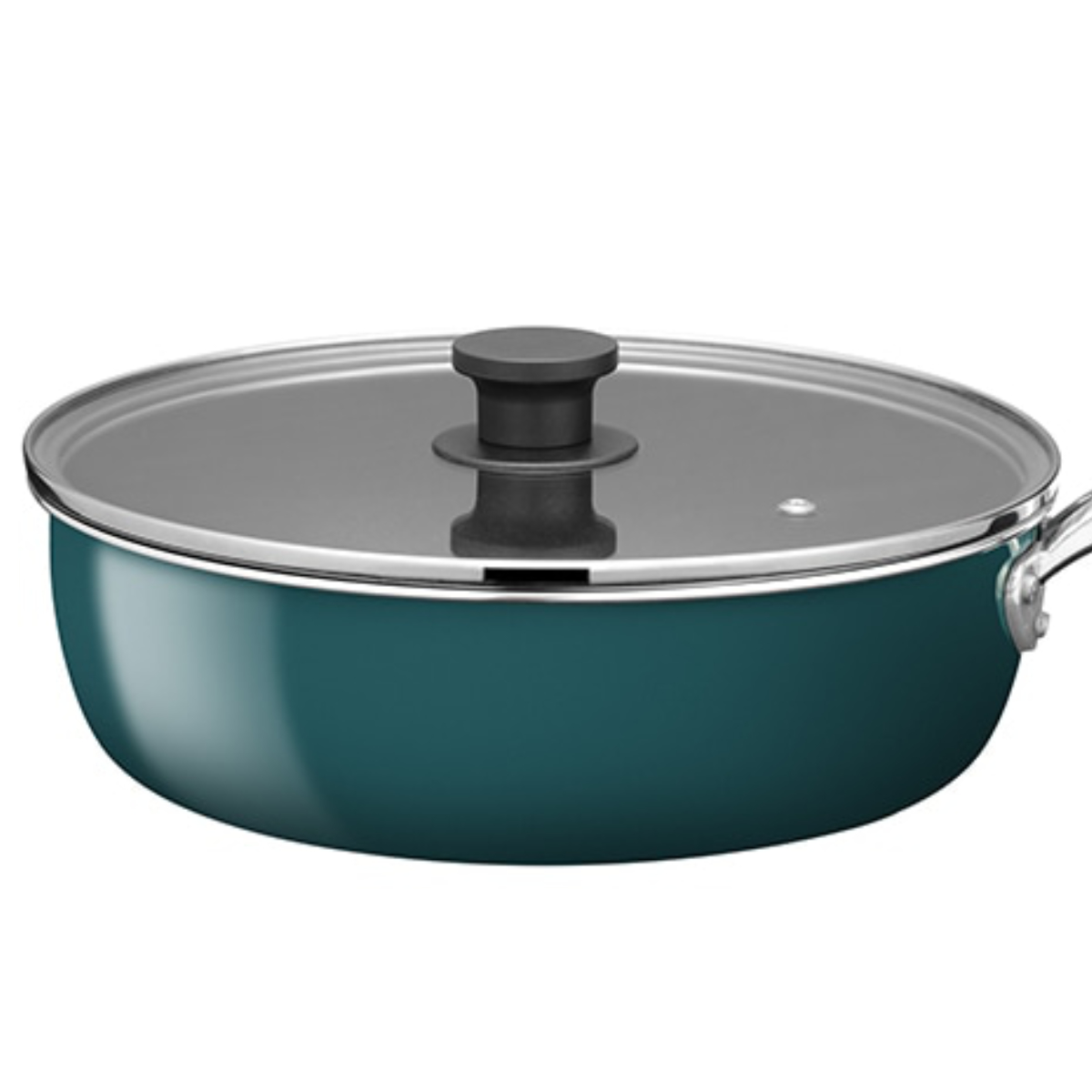 | 材質 | 本体:アルミニウム合金 底面:ステンレス鋼 内面:ふっ素樹脂加工 外面:ホーロー引き ハンドル部:フェノール樹脂 ハンドル取付け金具:アルミニウム合金 蓋:全面物理強化ガラス 化粧箱入 |
