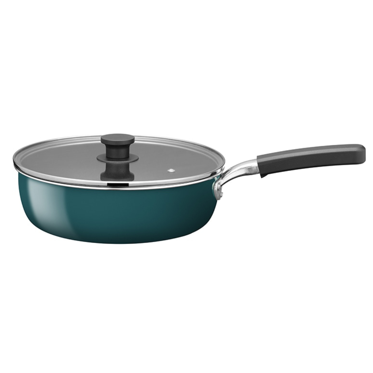 フライパン 24cm IH対応 深型 rinto 蓋付き 外面ホーロー加工 ( ガス火対応 片手鍋 炒め鍋 いため鍋 ふっ素加工 フッ素加工 リント ガラス蓋 24センチ フッ素コーティング 金属ヘラOK アルミ製 ホーロー加工 ターコイズ )