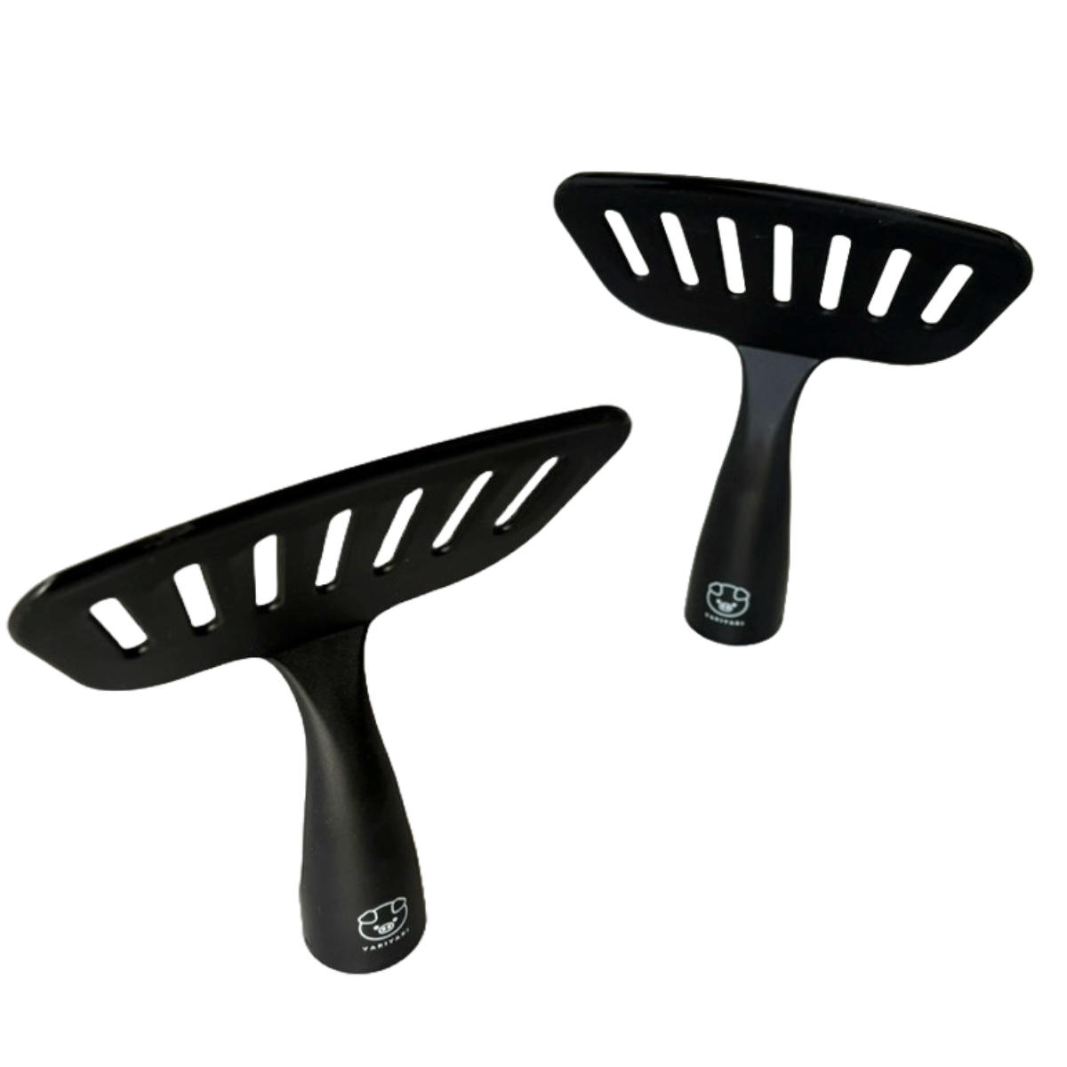 使用した後に置き場所に困らず、立てて置けるヘラです。2本組なので、大きなお好み焼きをラクに返すことができます。