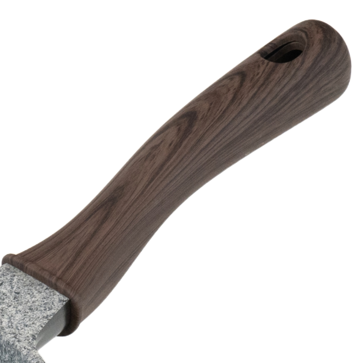 滑りにくく、手にフィットするハンドルです。木目調で高級感のあるデザインです。先端に穴があいているので掛けて収納することもできます。