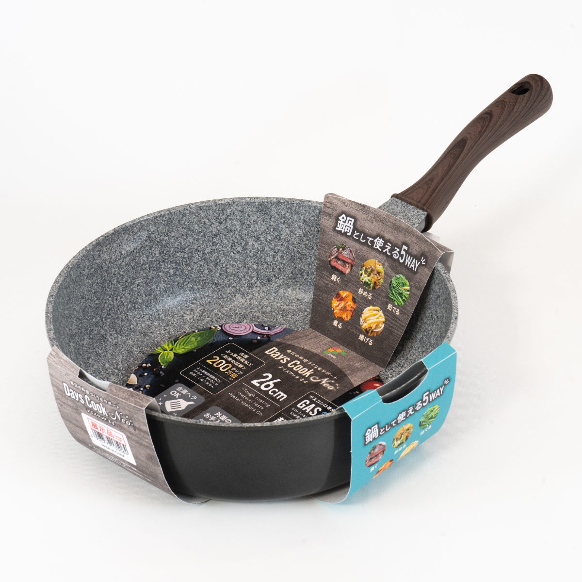 フライパン 26cm 深型 ガス火専用 デイズクックNeo 超軽量 ( ガス火対応 直火対応 炒め鍋 ふっ素加工 金属ヘラOK 軽い 26センチ いため鍋 フッ素加工 フッ素コーティング アルミ製 軽量 )