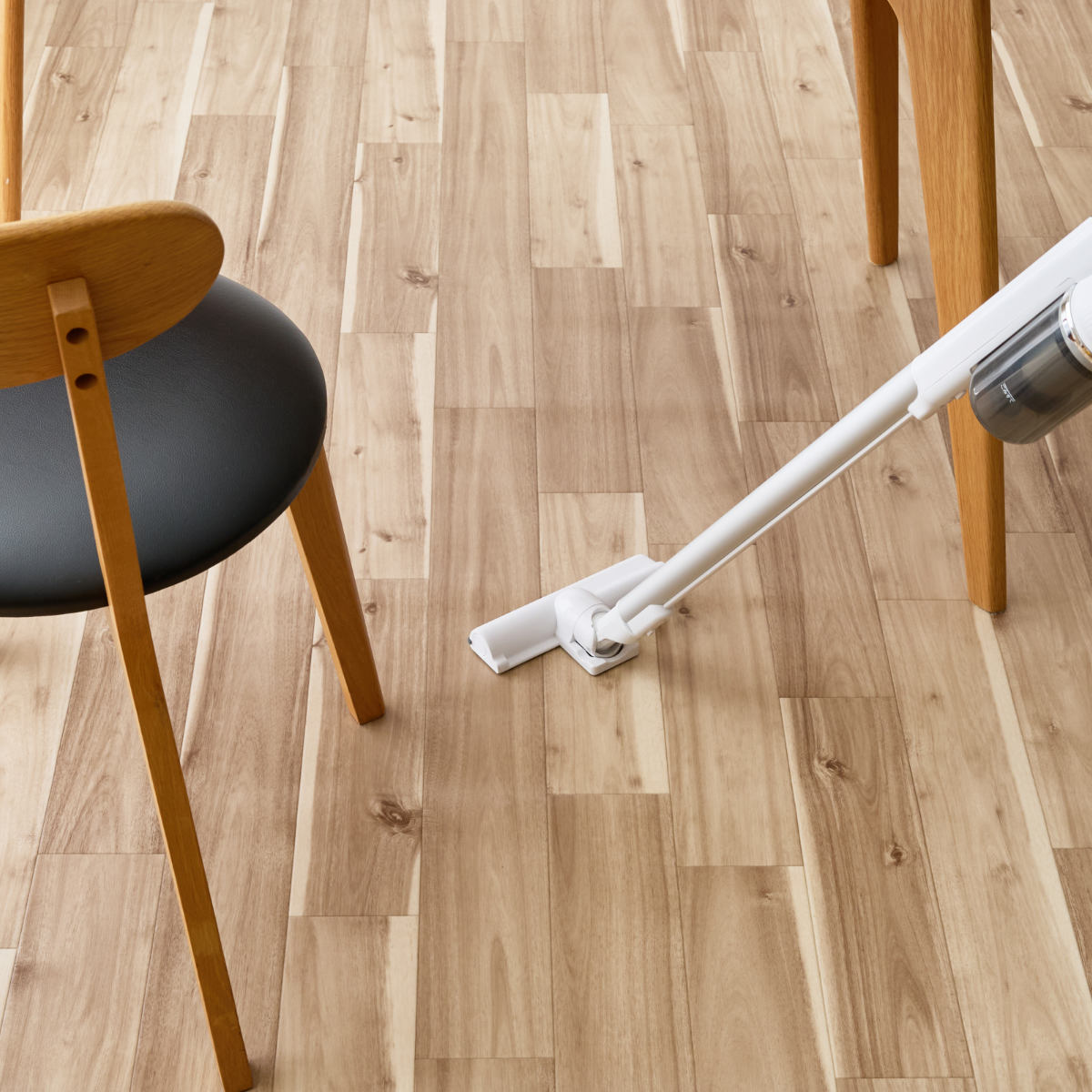 表面は毛足がないのでごみがラグに入り込むこともなく、掃除機やフロアモップで簡単に掃除ができます。水に強い素材で、汚れてもサッと拭き取れます。