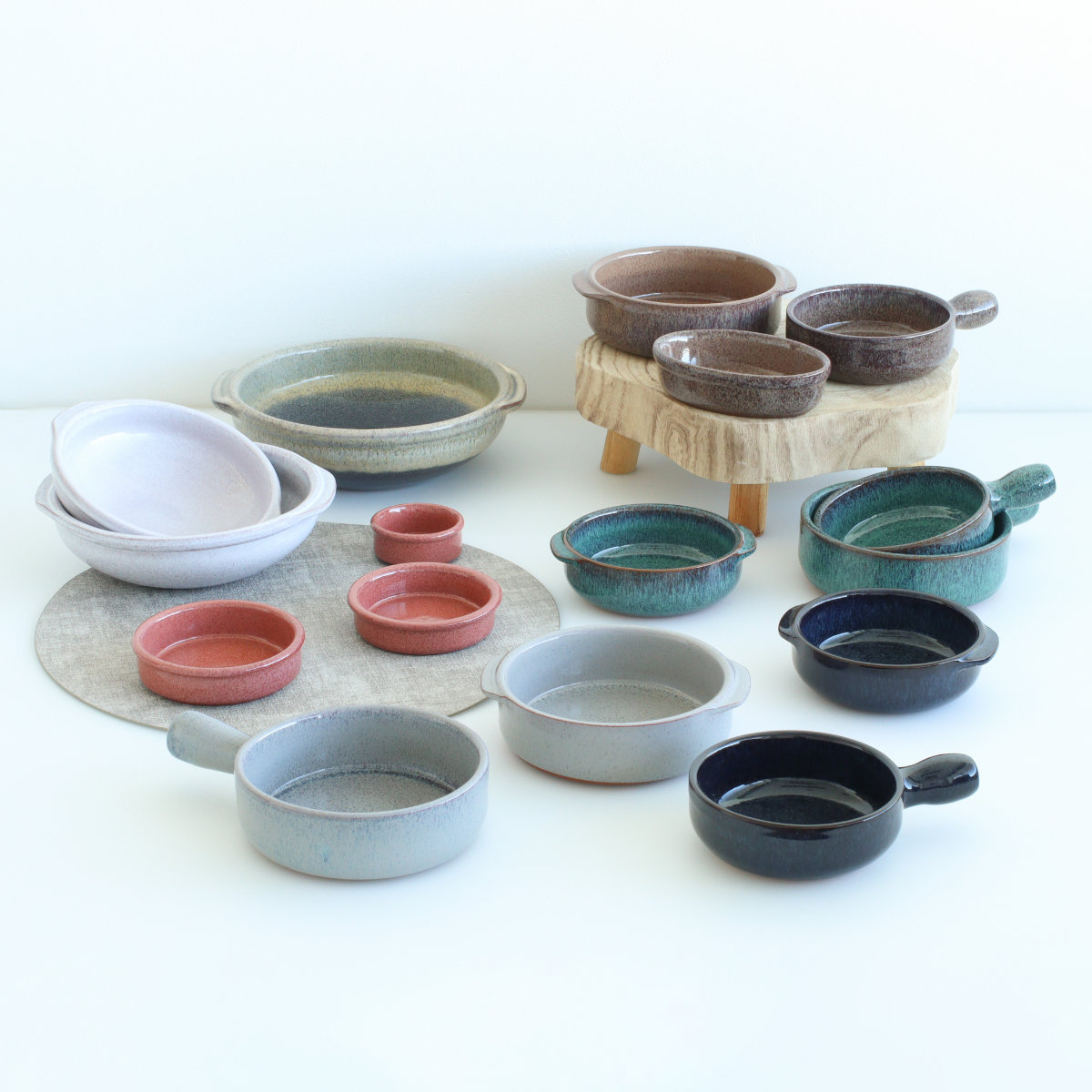 陶器の持つ土の温かみと窯変釉が織りなす奥行きの深さを感じるデザインの「ELMO(エルモ)」シリーズ。食卓にそのまま出せる陶器のオーブンウェアなので、料理の幅が広がり、いつもの食卓を温かな雰囲気に変えてくれるオーブンウェアです。