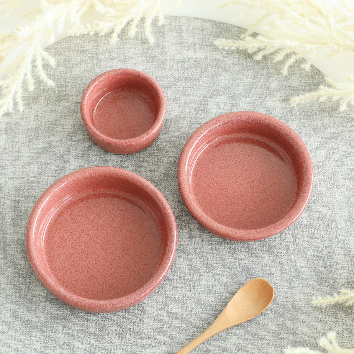 エルモのラウンドディッシュは、用途に合わせて選べる3サイズ展開です。一人分の料理から取り分け用まで幅広く使え、毎日の食卓やおもてなしシーンにも活躍します。