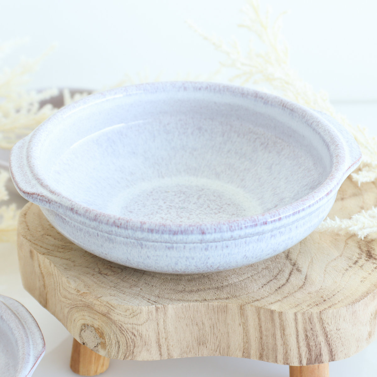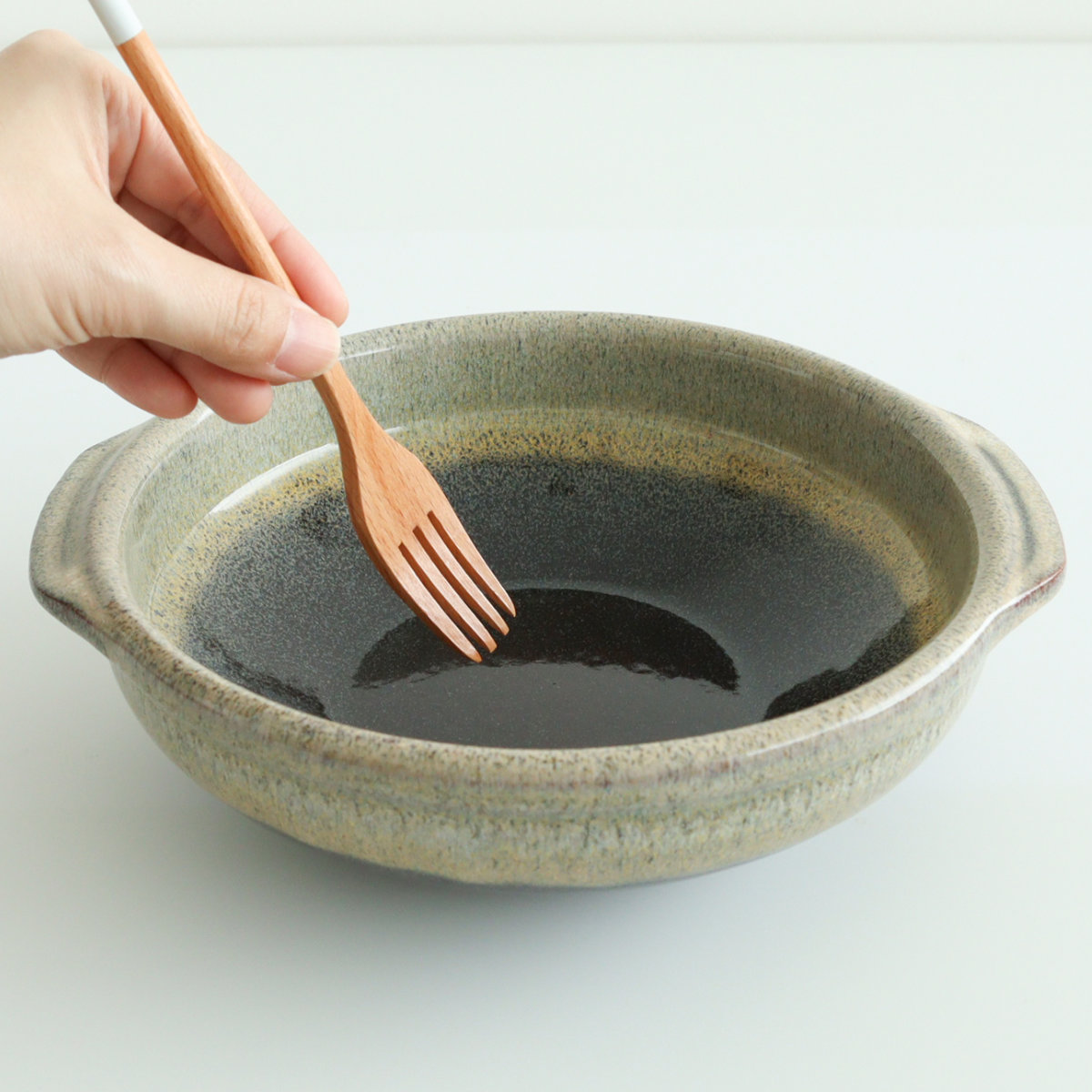 20cmサイズの両手付きボウルは、たっぷり盛り付けたいサラダや煮込み料理、シチュー、スープなどに最適な余裕のある大きさ。深さもしっかりあるため、汁気の多い料理でもこぼれにくく、取り分け用としても活躍します。
