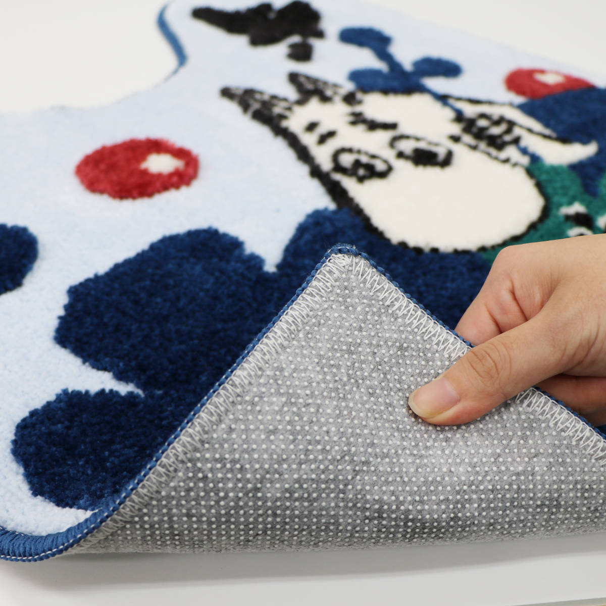 糸の材質や毛足の長さに変化をつけ、キャラクターを立体的に表現しています。肌触りも楽しめるマットです。