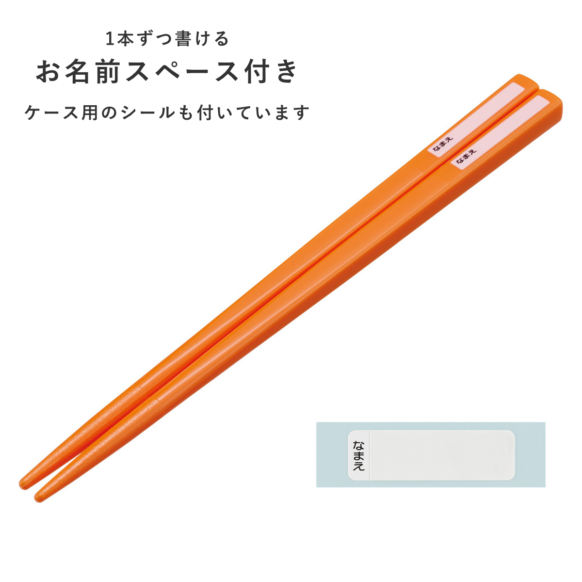 お箸の裏には名前を書き込めるスペース付きです。ケースにも名前が書けるシールが付いています。保育園や幼稚園でお友達と間違えたり、なくなる心配が減ります。