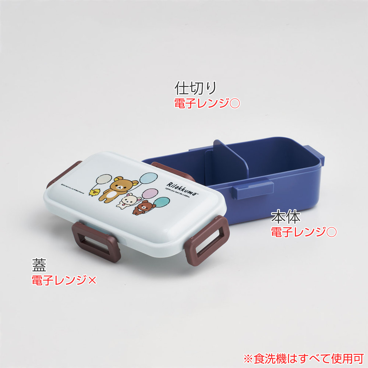 弁当箱 1段 530ml 抗菌ふわっと弁当箱 リラックマ ふわっと風船 ( ランチボックス 食洗機対応 レンジ対応 一段 抗菌 ドーム型 4点ロック 日本製 仕切り付き 銀 AG 抗菌加工 食洗機OK レンジOK お弁当 弁当 一段弁当 )
