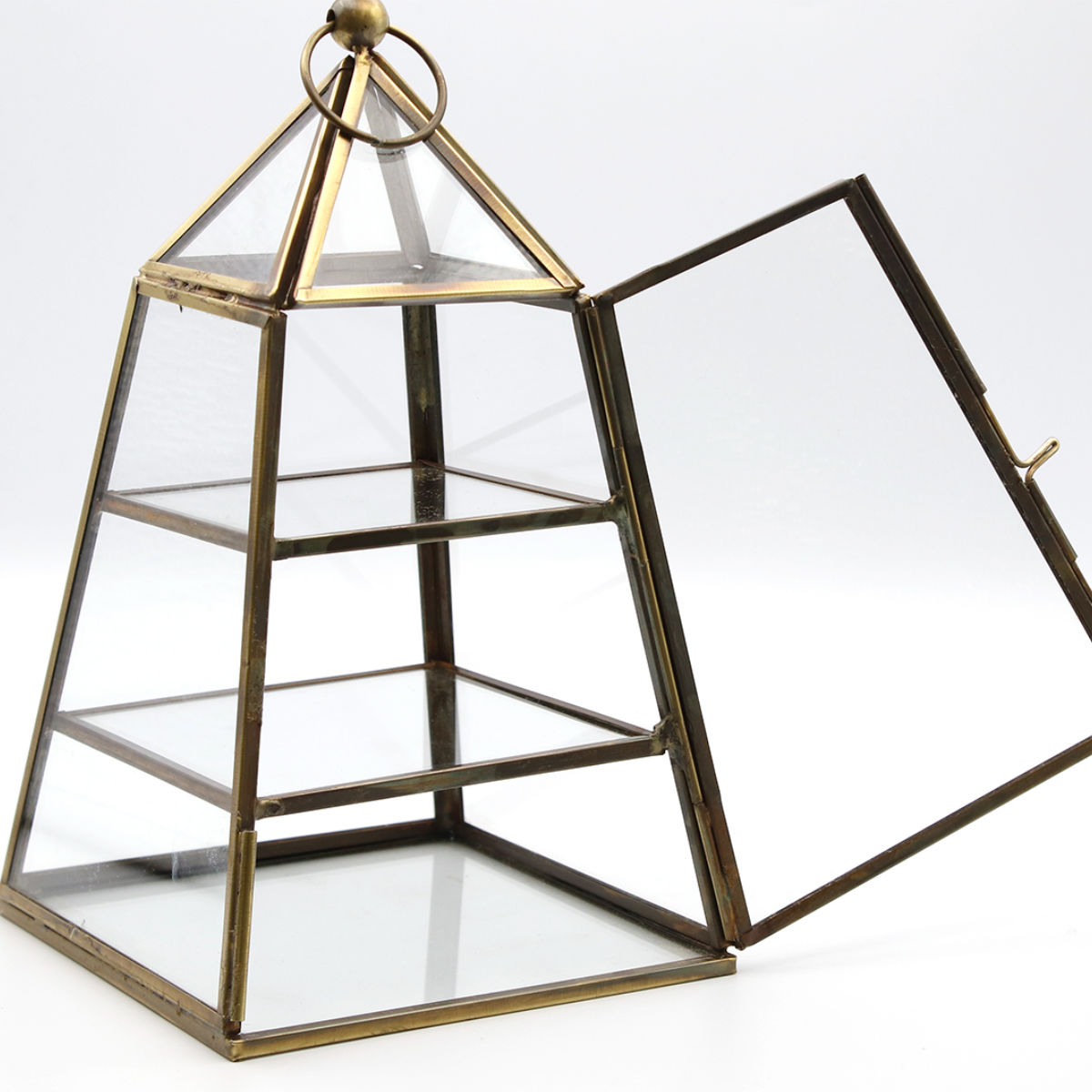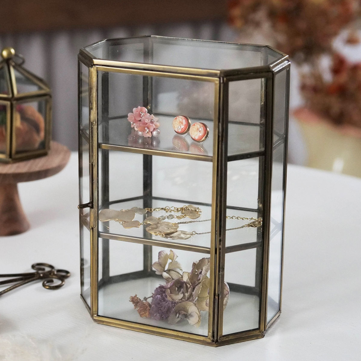 小物入れ モロッカン ガラス3段コレクションBOX ハウス 幅12×奥行12×高さ20cm ( 収納 コレクションケース アンティーク風 ディスプレイ アクセサリー収納 アクセサリーケース アクセサリー 小物ケース アクセサリー入れ 置き物 )