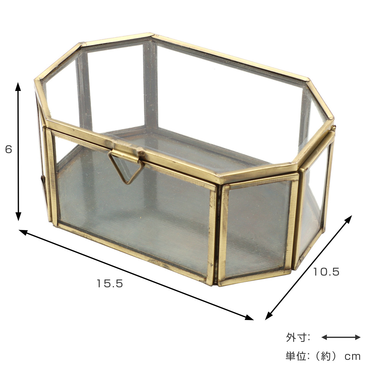 小物が映えるオクタゴン型のガラスボックスです。お気に入りのアクセサリーや雑貨などを見せて収納することができます。コンパクトサイズのため、お部屋の卓上や玄関先などに気軽に置いていただけます。